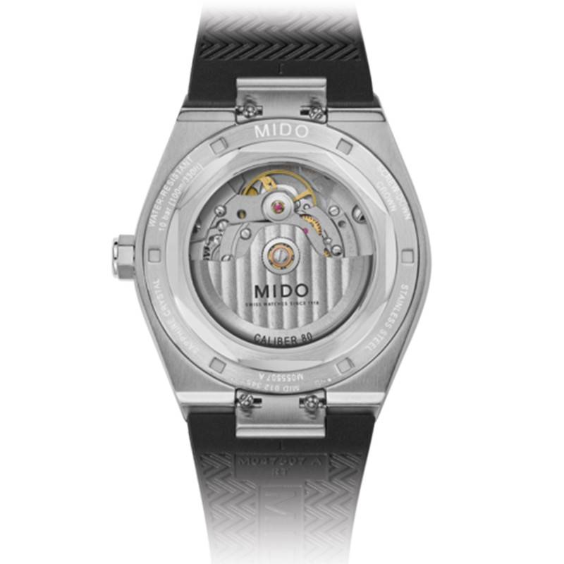 La qualité de cette montre est profondément enracinée dans son mouvement. Abritant un calibre Mido Calibre 80, ce garde-temps est une merveille technique de la tradition horlogère suisse. Ce calibre automatique est doté d'une réserve de marche impressionnante de 80 heures, permettant à la montre de continuer à fonctionner de manière fluide et précise, même après plusieurs jours sans être portée. Le mouvement fonctionne à une fréquence de 21.600 A/h (3 Hz), assurant une grande précision dans l'indication de la date, des heures, des minutes et des secondes.