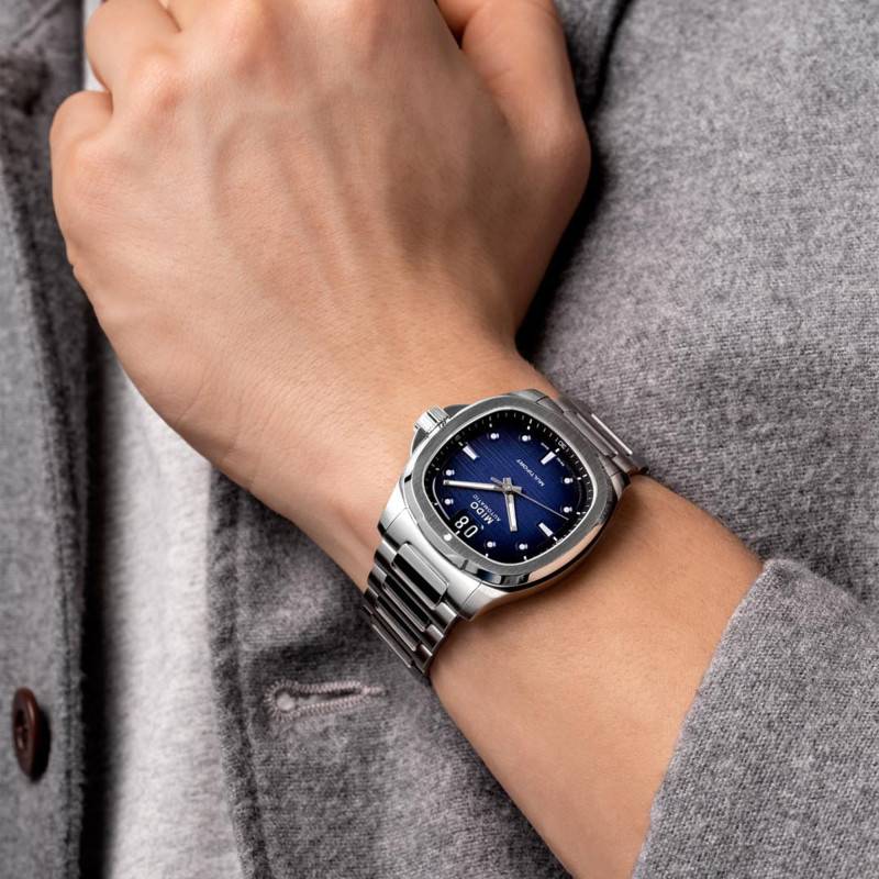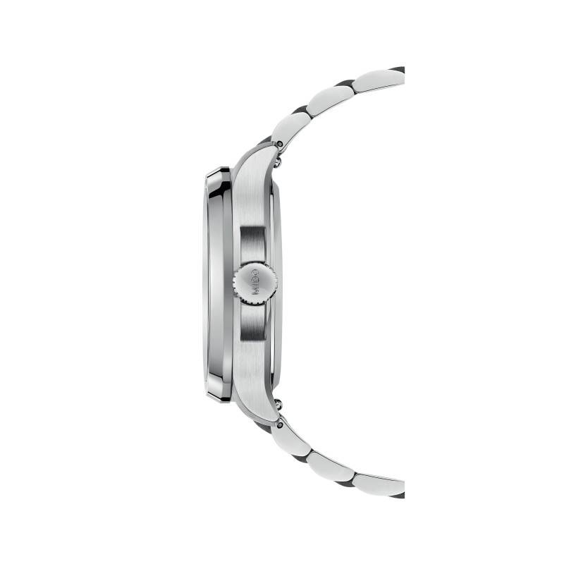 Mido est une marque horlogère connue pour ses montres sophistiquées et équipées. Elle élabore des garde-temps qui repoussent les limites en matière d'innovation avec des techniques avancées. La marque suisse ne cesse de confectionner des modèles de précision et fiables, dans le but de vous accompagner lors de toutes vos aventures. Elle vous invite à découvrir la montre Multifort TV Big Date M0495261104100 destinée à la gent masculine. Réalisée en acier inoxydable brossé , cette dernière dévoile un boîtier coussin de 40 × 39,20 mm de dimensions avec une épaisseur de 11,50 mm. Sa surface est recouverte par un verre saphir qui protège son cadran des chocs. Très résistant, ce dernier est revêtu d'un traitement antireflet qui vous assure une lecture nette. Sur la droite, une couronne grise crantée prend place. Vissée, elle régule les différents éléments centraux. Enfin, ce garde-temps pèse 155 grammes et dispose d'un fond de boîte vissé et transparent assurant une étanchéité de 10 ATM.