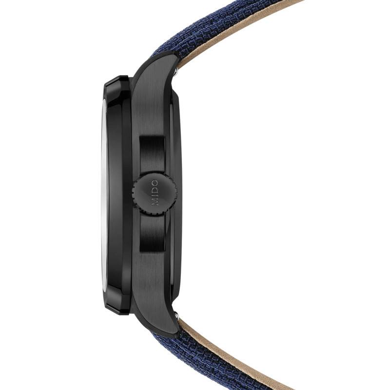 Au cœur de la Montre Multifort TV Big Date bat un mouvement automatique de la plus haute précision : le Mido Calibre 80, dérivé de l'illustre ETA C07.651. Ce calibre suisse incarne l'innovation et l'expertise technique, étant doté d'une masse oscillante qui permet une réserve de marche étendue. La présence du système de résistance magnétique témoigne de l'engagement de Mido envers non seulement la précision mais aussi la durabilité, en protégeant le mouvement des perturbations magnétiques potentielles que vous pourriez rencontrer. Ce mécanisme offre une fiabilité qui est rehaussée par les finitions intérieures visibles à travers le fond transparent de la montre.