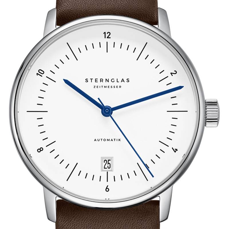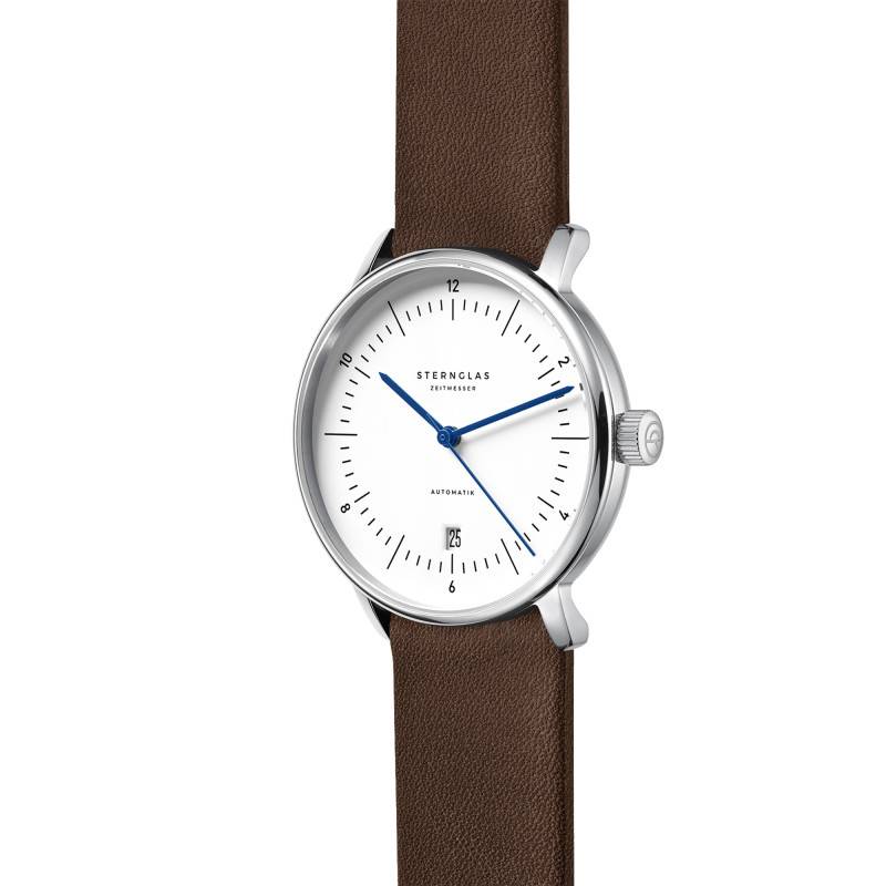 Le cadran de la Sternglas Naos Automatic White est l'incarnation de l'équilibre entre simplicité et sophistication. Son fond blanc immaculé, agrémenté d'une finition mat, offre un contraste saisissant avec les index et aiguilles noirs. Les chiffres arabes et les bâtons sont disposés avec précision pour une lecture optimale de l'heure, capturant l'essence même d'une lisibilité sans égale. Il arbore une élégante disposition analogique, où se déplacent trois aiguilles centrales légères qui glissent gracieusement pour indiquer les heures avec une précision minutieuse, tandis que la date s'affiche sobrement à 6 heures dans un guichet parfaitement intégré.