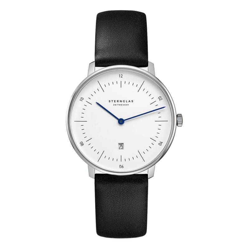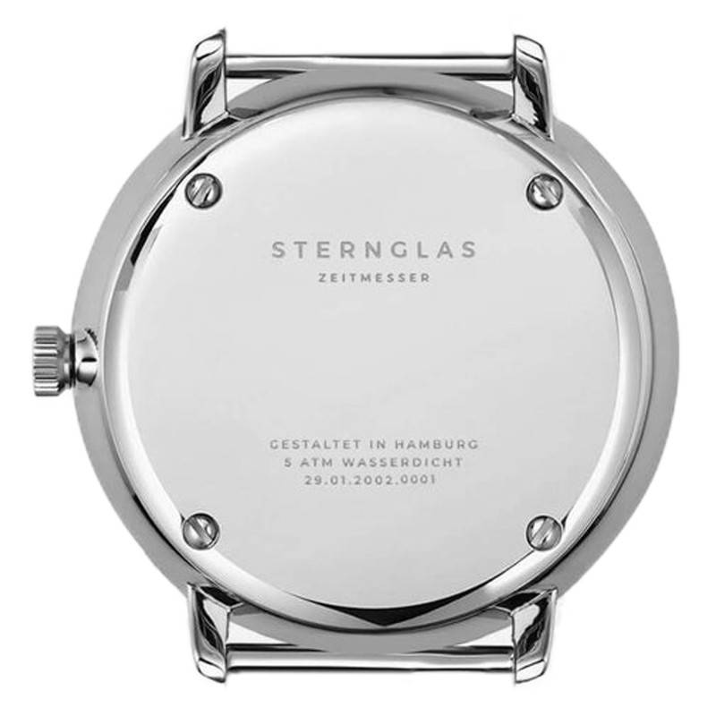 Sternglas est une jeune marque horlogère qui s'est imposée grâce à ses créations au style rétro et d'inspiration Bauhaus. Vous retrouverez un savoir-faire unique à travers des détails soignés et des designs uniques. Ses modèles combinent fonctionnalité et esthétique pour vous accompagner au quotidien. Cette magnifique montre Naos XS Silver Klassik Black S01-ND01-KL05 ajoutera une note distinctive à votre poignet. Son boîtier en acier inoxydable 316L et aux dimensions purement féminines affiche un diamètre de 33 mm, une épaisseur de 6 mm et une longueur de 36 mm. Sa finition polie mettra en valeur votre poignet au gré de vos mouvements. À 3 heures, se place une couronne crantée qui permet de régler les indicateurs du cadran. Ce dernier est recouvert d'un verre saphir bombé au double traitement antireflet qui vous permettra une lisibilité optimale. Pour finir, le fond de boîte maintenu par des vis garantit une étanchéité de 5 ATM.