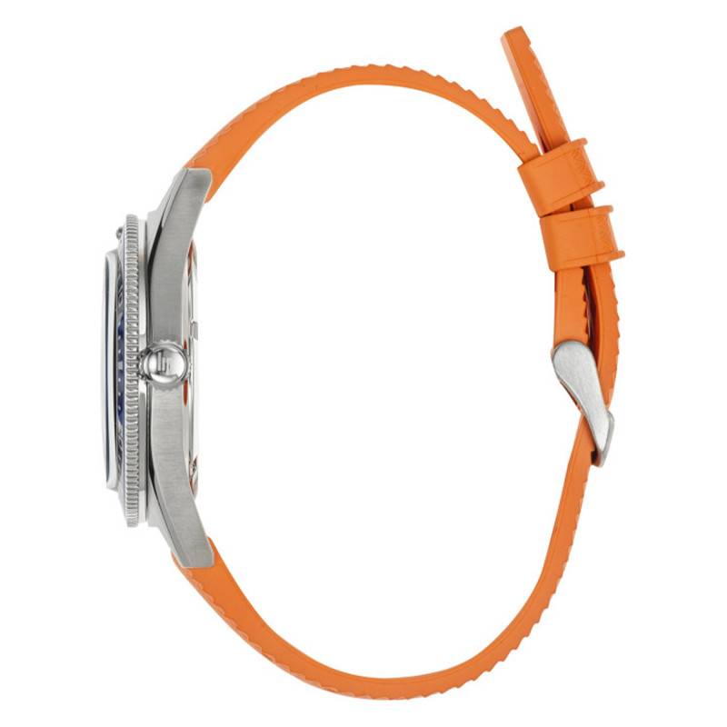 Le bracelet en caoutchouc orange constitue la liaison parfaite entre robustesse et confort, soulignant le caractère sportif et dynamique de la montre Nautic 3 de Lip. Avec une largeur de 20 mm, il assure une tenue sécuritaire et légère sur le poignet même sous conditions difficiles. La couleur vive orange lui donne une identité exceptionnelle et assure une empreinte visuelle forte qui saura se démarquer à la fois en milieu urbain et dans des environnements plus aventureux. Pour un maintien sans faille, ce bracelet est complété d'une boucle déployante avec un fermoir de sécurité, assurant un usage pratique et intuitif au quotidien.