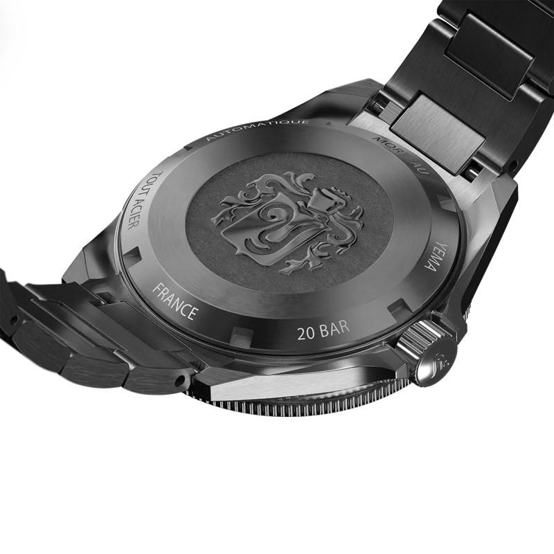 La Navygraf Heritage YNAV25-ATP de Yema est une montre qui se distingue par son boîtier tonneau en acier inoxydable 316L. Fabriquée en France, cette montre bénéficie d'une finition mate brossée et polie brillante. Avec une épaisseur de 10,85 mm et un diamètre de 39 mm, elle offre un design compact et robuste, reflétant l'esprit des années 60. Le fond vissé contribue à une étanchéité exceptionnelle de 20 ATM, rendant cette montre idéale pour les activités sous-marines.