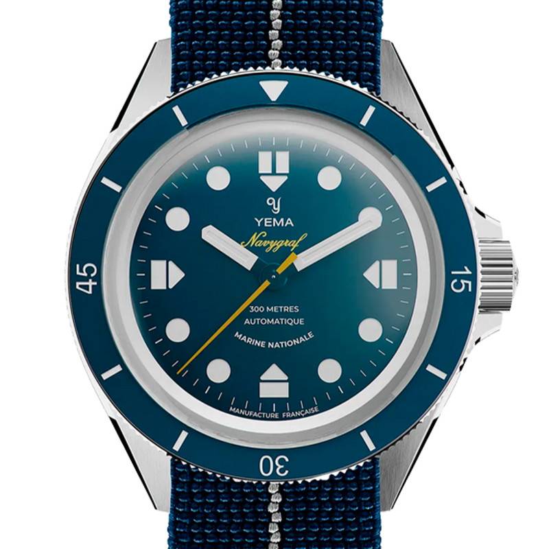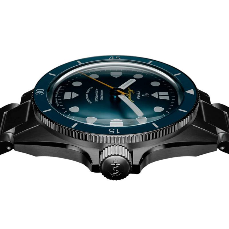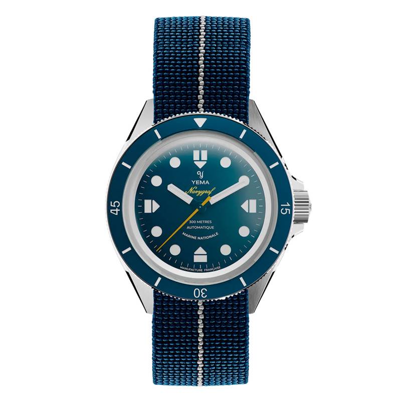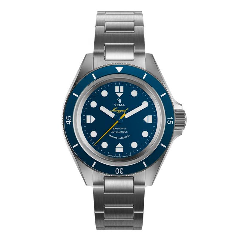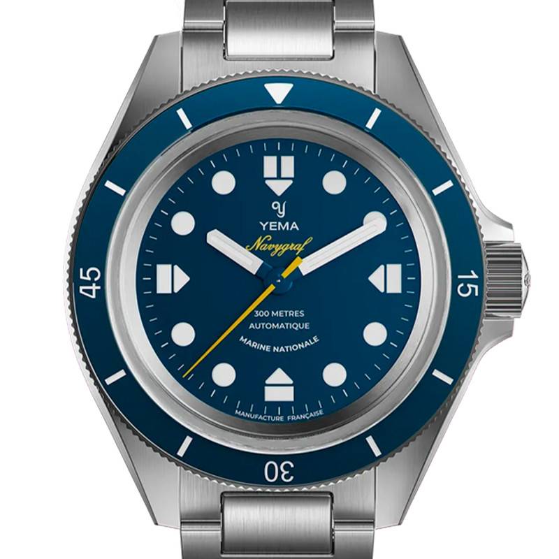 Yema est une marque d'horlogerie fondée en 1948 par Henry Louis à Besançon. Elle se distingue en proposant des garde-temps parfaitement étanches et conquit rapidement les amateurs horlogers. Elle réalise des modèles de plongée et des chronographes résistants animés par des mécanismes de pointe garantissant une fiabilité remarquable. Ils sont réalisés à partir de matériaux solides et sont techniquement aboutis pour un usage fonctionnel en toute occasion. La marque française propose des designs variés allant des designs sophistiqués aux sportifs et tous fiables. Fidèle à son héritage, Yema combine innovation et savoir-faire artisanal pour vous présenter la montre Navygraf Marine Nationale CMM.10 lunette bleue qui enchantera les hommes passionnés de la plongée. Elle est fabriquée en collaboration avec la Marine nationale et se distingue par son boîtier imposant réalisé en acier inoxydable 316L. Brossé et poli, il affiche 39 mm de diamètre et 11 mm d'épaisseur sur une longueur de 46 mm. Son cadran est protégé par un verre saphir double dôme de 2,50 mm d'épaisseur, garantissant une excellente résistance aux chocs quotidiens. Ce dernier est entouré d'une lunette de plongée unidirectionnelle ornée d'un insert en saphir bleu avec des chiffres arabes à intervalles de 15 minutes et des indices traités au super-luminova BGW9 de grade A pour une lisibilité optimale. Une couronne grise, à 3 heures, vissée et crantée permet de régler les éléments centraux. Elle est relevée par l'ancre des galons de la Marine nationale en relief et assure une bonne prise en main confortable. Cette montre est fermée par un fond de boîte vissé muni d'un verre saphir permettant d'observer dans les moindres détails les oscillations du mouvement. Il est gravé et assure une étanchéité de 30 ATM.