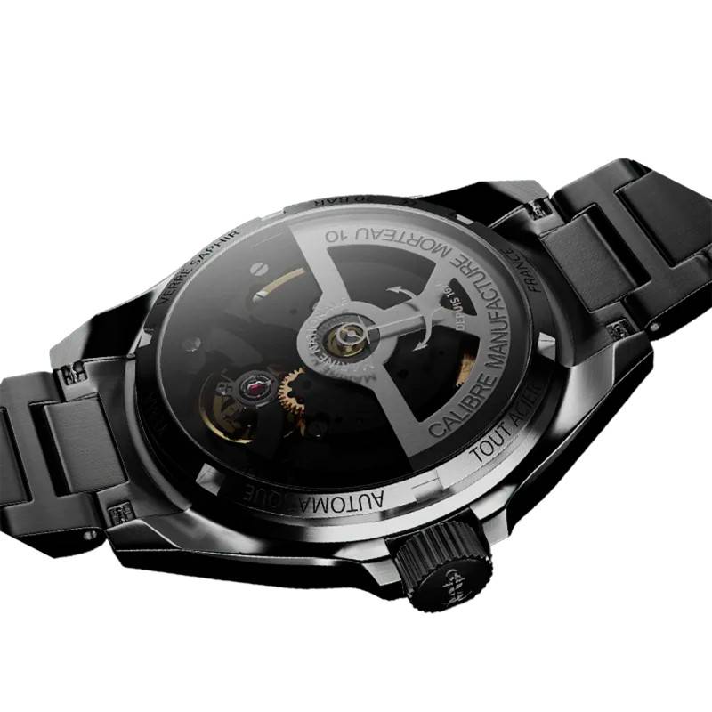 Au cœur de ce garde-temps se trouve un mouvement automatique CMM.10 de 28 mm de diamètre conçu par la maison. Fiable, il oscille à une fréquence de 28.800 Alt/h (4Hz) avec une précision chronométrique de -3 / +5 secondes. Il est doté de 208 composants, tels qu'un grand barillet à ressort Nivaflex, un balancier en glucydur ou encore une décoration aux procédés galvaniques. Ce mécanisme résiste aux champs magnétiques grâce à ses alliages non-magnétiques ainsi qu'aux chocs grâce à ses amortisseurs incabloc double cône. Il arbore une masse oscillante bidirectionnelle avec 27 rubis qui diminuent les frottements et promet une réserve de marche d'environ 70 heures.