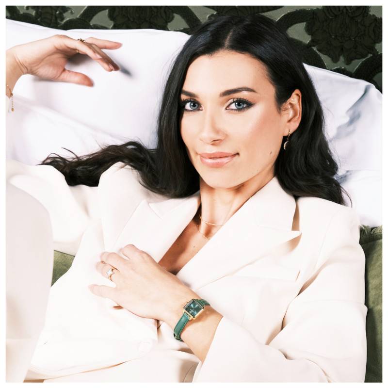 Le cadran de cette montre est une véritable œuvre artistique avec sa finition soleillée qui émet un rayonnement captivant sous diverses conditions d'éclairage. La couleur verte intense du cadran, associée aux index en strass métalliques, crée une allure glamour. Ce design minimaliste, sans chiffres numériques, privilégie un affichage épuré des heures et des minutes, soulignant le raffinement sublime de cette montre. Chaque élément est soigneusement proportionné dans ce cadran orné, optimisant la lisibilité tout en préservant une esthétique chic.