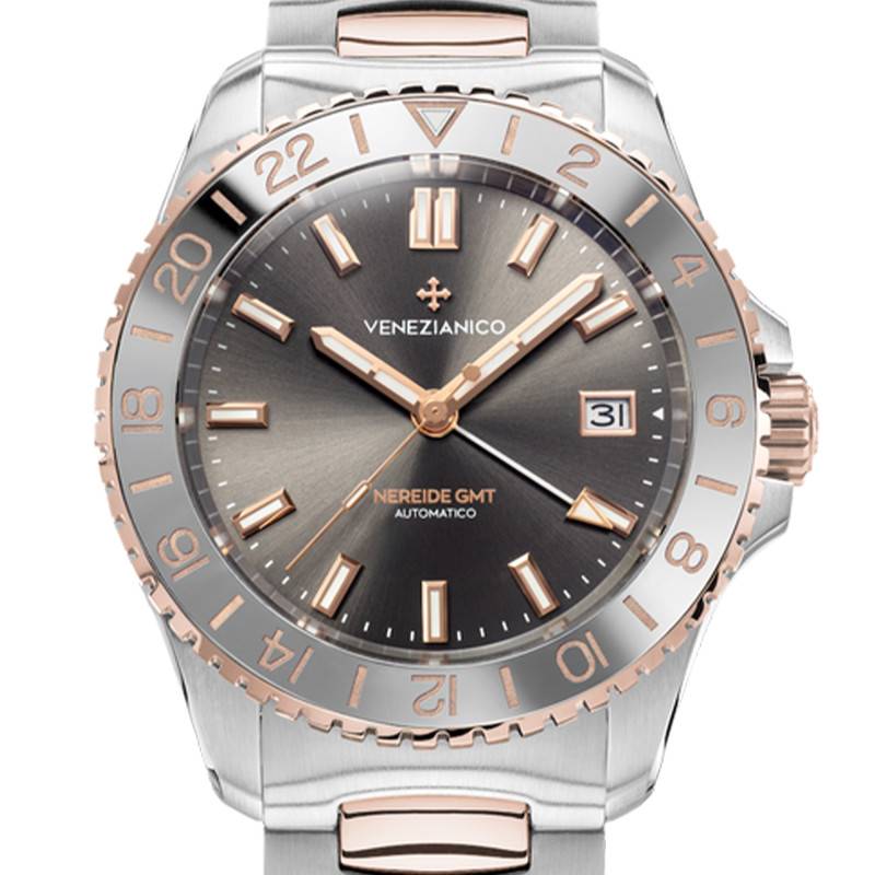 La montre Nereide GMT Grand Tour de Venezianico se distingue par son raffinement minutieux et sa robustesse harmonieuse. Son boîtier rond en acier inoxydable 316L est sublimé par un traitement IP or rose 5N, mêlant subtilement la solidité de l'acier à la chaleur du rose. Avec un diamètre de 39 mm, elle arbore une présence imposante sans être ostentatoire, idéal pour ceux qui apprécient une esthétique épurée combinée à une ingénierie d'exception. Le profil de la montre a été entièrement repensé pour offrir des proportions plus fines et équilibrées, avec une épaisseur de 11,90 mm, renforçant ainsi son ergonomie et sa présence au poignet.