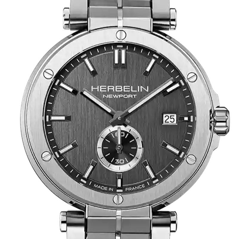 Le cadran de cette montre Michel Herbelin Newport, d'une élégance inégalée, est un chef-d'œuvre de minutie et de précision. Il se démarque par sa couleur neutre sophistiquée, assurant une lecture claire grâce à des index bien marqués et un chemin de fer des minutes. Les aiguilles et index luminescents et épurées, apportent une touche lumineuse essentielle, surtout en condition de faible éclairage, permettant une lecture aisée des heures, minutes et secondes. Le guichet date, discrètement placé, offre une fonction pratique sans surcharger le design minimaliste du cadran.