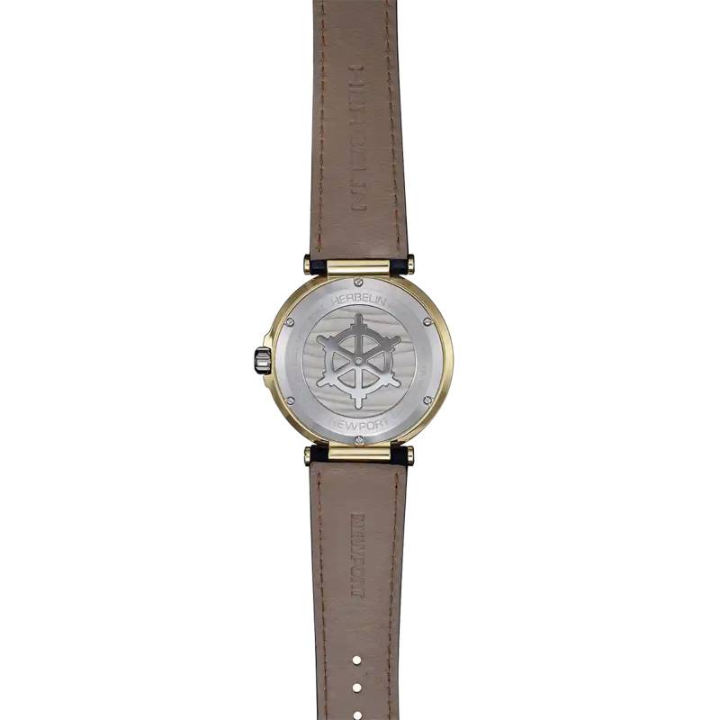 L'étanchéité de cette montre Michel Herbelin Newport Elegance est d'une résistance de 10 ATM, elle est conçue pour supporter non seulement les éclaboussures accidentelles mais aussi une immersion significative dans l'eau, comme lors de la natation. D'un point de vue technique, cette capacité est renforcée par le fond maintenu par des vis, assurant une sécurisation solide des composants internes contre la pénétration de l'eau.