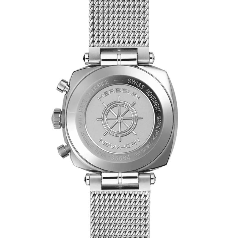 Chic et sportif, ce nouveau modèle Heritage est réinterprété par la maison horlogère Michel Herbelin. Issue de la collection Newport, cette montre est inspirée de l'univers marin et dotée d'un savoir-faire français. Son boîtier, subtilement mis en relief grâce à sa lunette rappelant un hublot et ses surfaces polies et brossées, vous propose une allure masculine. Doté de la forme coussin, le boîtier qui compose cette montre est en acier inoxydable 316L. Il arbore une épaisseur de 12,5 mm et un diamètre de 42 mm et est équipé d'une couronne remontoir ainsi que de deux boutons-poussoir pour le réglage des aiguilles et l'utilisation de la fonction chronographe. Son cadran est quant à lui surplombé par un verre saphir galbé qui permet un affichage lisible accentué par les nuances de couleur. Ce dernier permet également de parfaitement protéger le cadran des éventuelles dégradations du quotidien. Enfin, ce garde-temps dispose d'un fond de boîte vissé qui vous garantit une étanchéité de 10 ATM.