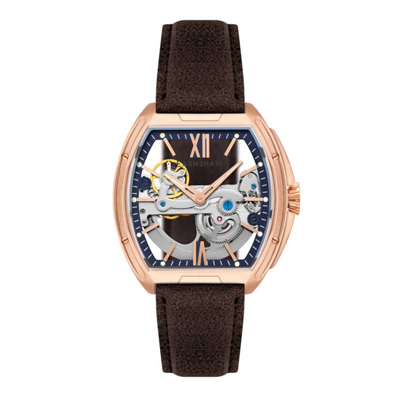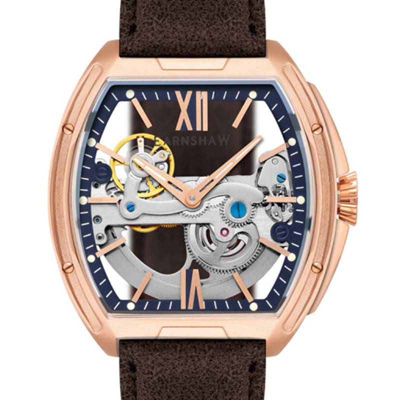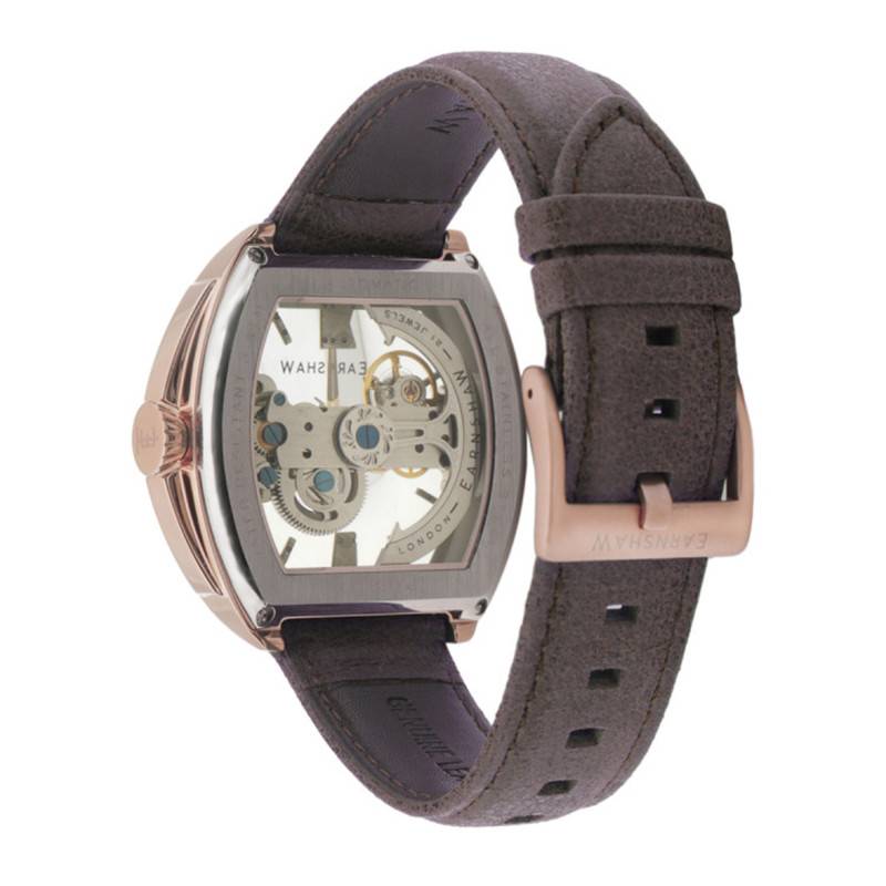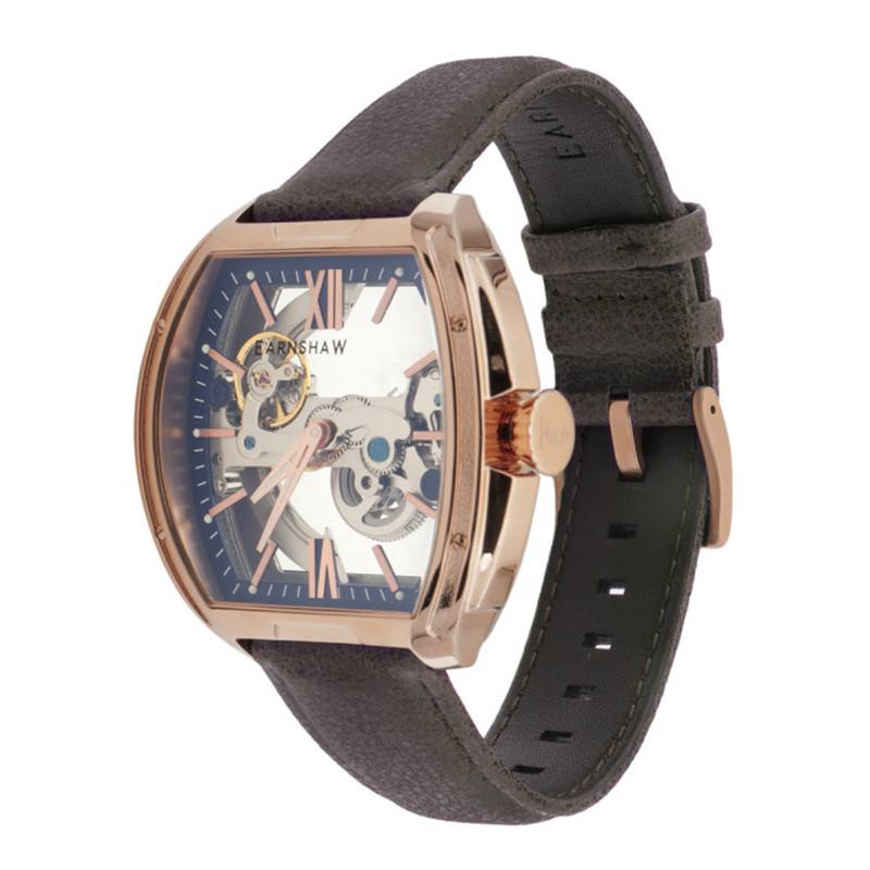 Thomas Earnshaw, célèbre pour son élégance et son savoir-faire, nous présente ici une montre de forme tonneau en acier inoxydable avec une finition polie / brillante en rose. Le boîtier affiche un diamètre généreux de 45 mm et une épaisseur de 14 mm, offrant une présence remarquable au poignet. Cette montre pour homme allie harmonieusement la tradition et la modernité avec son fond transparent qui permet d'admirer le mouvement mécanique. La couronne est placée stratégicalement sur le côté, facilitant ainsi le réglage de l'heure.