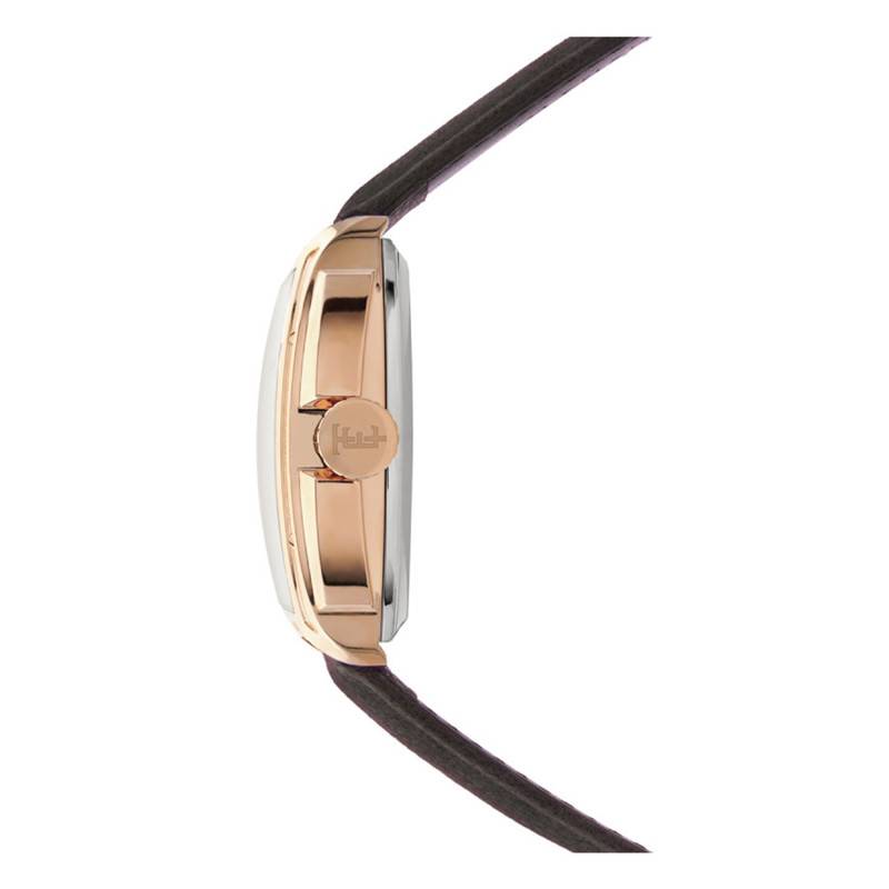 Le bracelet en cuir de bovin de cette montre, de couleur marron, est tout aussi raffiné que confortable. Sa finition en cuir grainé ajoute une touche de sophistication supplémentaire. La largeur de son entrecorne mesure 22 mm, garantissant une fixation robuste et sécurisée. Le bracelet se ferme à l'aide d'une boucle ardillon simple et pratique qui accentue son allure intemporelle et classique.