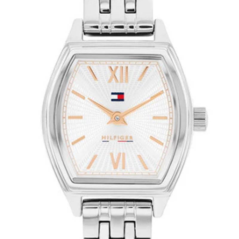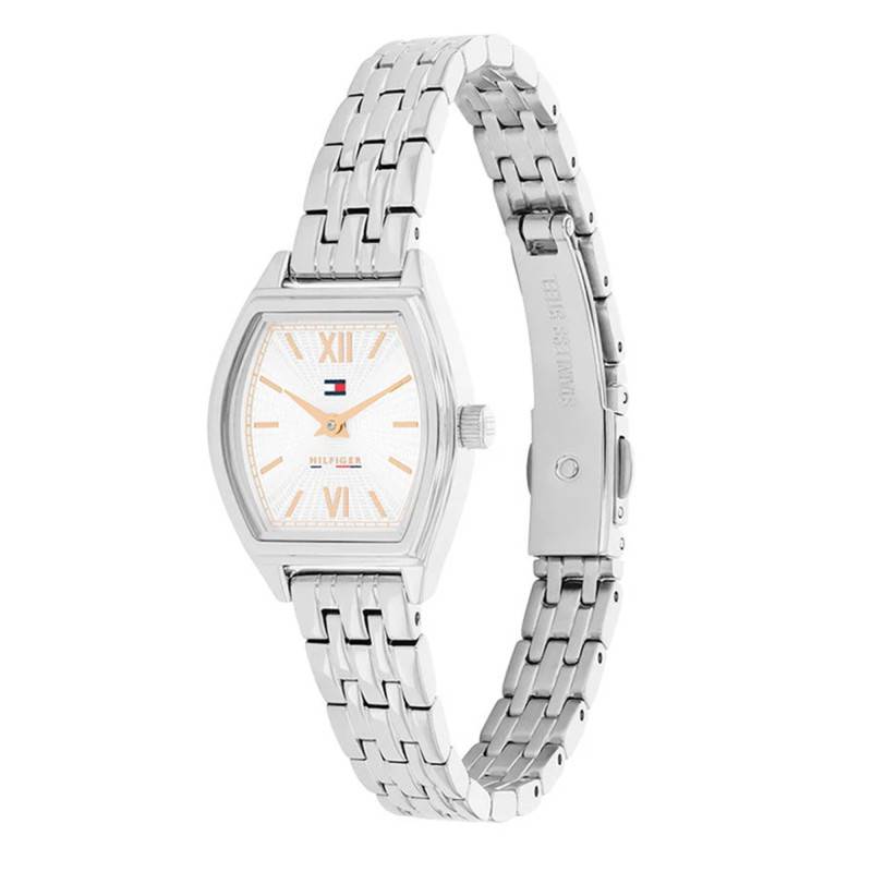 La montre Tommy Hilfiger Norah est une véritable incarnation de l'élégance moderne avec son boîtier en forme de tonneau fabriqué en acier inoxydable. Pesant seulement 42 grammes, elle allie légèreté et robustesse. Avec ses dimensions compactes, notamment un diamètre de 22 mm et une épaisseur de 7 mm, elle s'adapte parfaitement à un poignet féminin. Le fond du boîtier est emboité, garantissant un assemblage harmonieux et discret
