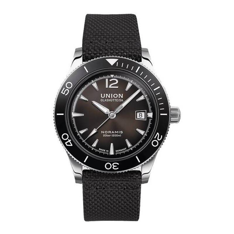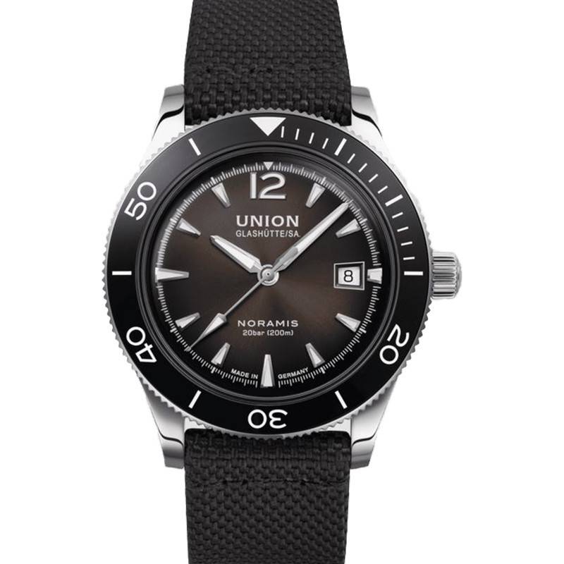 La maison Union Glashütte imagine et conçoit des modèles de montres inspirées des codes des années 50 et 60 avec le design moderne d'aujourd'hui. Cette marque allemande prend soin de chaque détails et c'est à la main que chaque garde-temps est assemblé. Les montres sophistiquées proposées par la maison sauront vous séduire. Parmi sa collection Noramis, laissez vous charmer par la montre NORAMIS DATE SPORT D012.907.18.057.00. Elle est composée par un superbe boîtier en acier inoxydable 316L de couleur noire et au diamètre de 42 millimètres. Un verre en saphir bombé vient protéger le cadran de ce garde-temps afin de prévenir les possibles rayures. Ce verre a été traité de sorte à ce qu'aucune reflet ne vous empêche de lire le temps. Sachez que l'épaisseur de ce modèle est de 12,9 millimètres, ce qui en fait un garde-temps très discret à votre poignet. Dans la continuité des trois heures, vous trouverez une couronne pour régler les aiguilles. Vous remarquerez aussi la lunette noire crantée très moderne. Enfin, cette montre unique pourra aussi s'avérer un modèle sportif puisque grâce à son incroyable étanchéité de 20 ATM, elle pourra rester à votre poignet même lors de vos sessions de plongée.