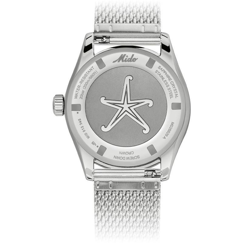 C'est un mouvement automatique Mido Calibre 80 qui vibre au cœur de ce boîtier. De manufacture suisse et propre à la marque, il donnera vie aux aiguilles de cette montre tout en vous offrant précision et fiabilité. De base ETA C07.661, il permet une réserve de marche allant jusqu'à 80 heures et son spiral Nivachron assurera une résistance aux champs magnétiques.