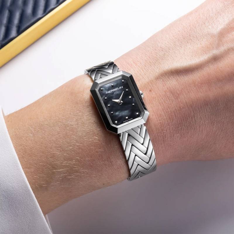 Fondée en 1947, Herbelin a pour vocation d'incarner et de préserver les valeurs et le savoir-faire français en matière de haute horlogerie. Dans cette optique, cette marque continue à perpétuer son histoire et sa philosophie avec détermination. C'est l'une des raisons pour lesquelles elle s'est imposée comme l'une des marques horlogères les plus connues au monde. Dans sa collection Octogone, elle vous présente cette montre de couleur argentée qui saura combler toutes les femmes en quête d'élégance. Elle dispose d'un boîtier de forme octogonale fabriqué en acier inoxydable 316L de finition polie. Il présente une longueur de 26,40 mm, une largeur de 20,40 mm et une épaisseur de 6,40 mm et s'adaptera parfaitement aux poignets féminins. Le verre saphir qui est déposé sur ce boîtier protégera efficacement le cadran des rayures et des chocs extérieurs. Ce modèle est muni d'un fond emboîté qui lui accorde une étanchéité qui s'élève à 5 ATM.