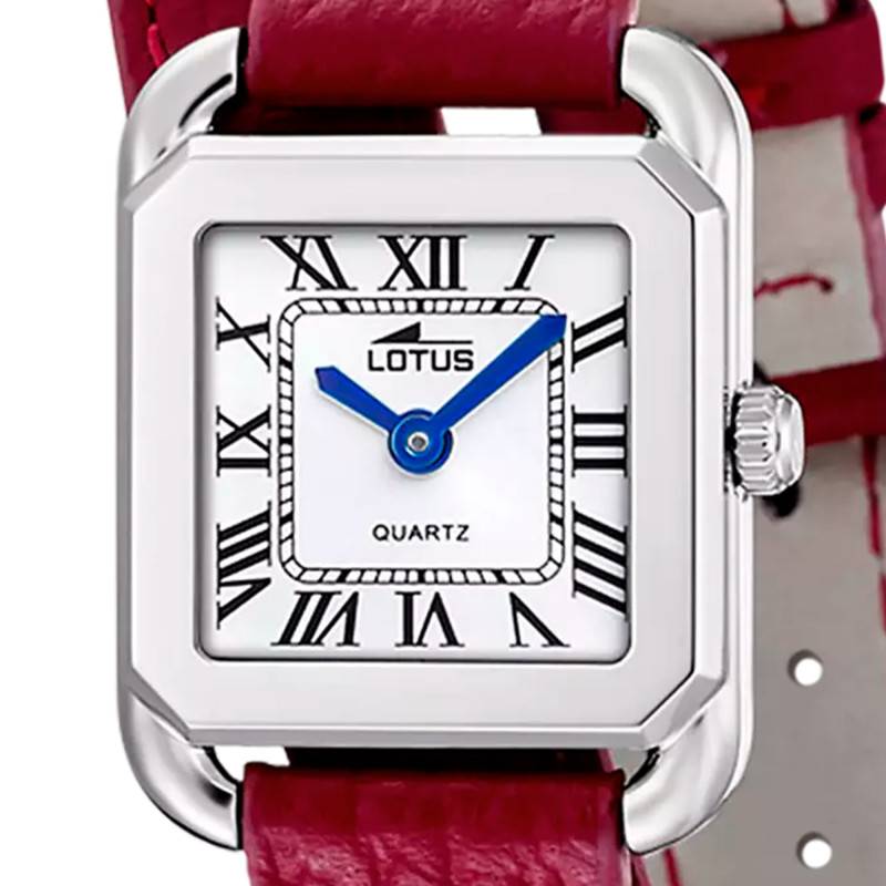 La montre Lotus se distingue par son boîtier carré en acier inoxydable, mesurant 22 mm de diamètre et d'une épaisseur de 6,90 mm. La finition poli et brillante de cet acier assure une réflexion de la lumière, ajoutant à l'éclat de ce modèle. Son boitier carré apporte une touche de modernité et d'originalité, sortant des sentiers battus des formes plus conventionnelles. Positionnée avec un bouton remontoir pratique, la montre offre une manipulation simplifiée et est idéale pour un usage quotidien. Elle héberge un fond de boîte emboité, signifiant une approche utilitaire sans visibilité directe sur le mouvement interne, tout en assurant une protection efficace contre les infiltrations d'eau et d'humidité.