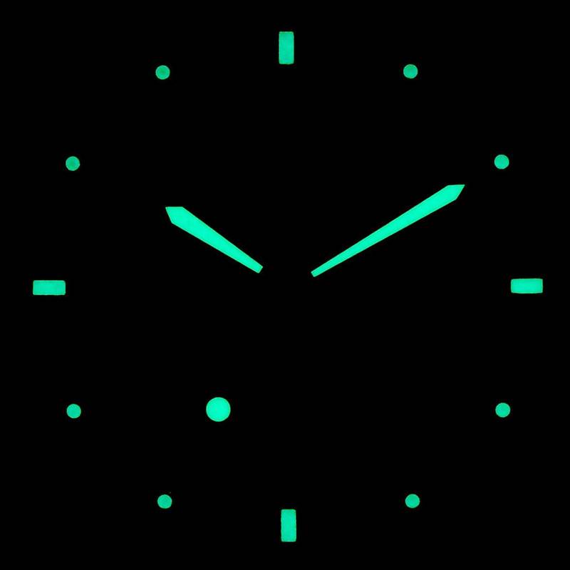 Spécificités de l'affichage | Aiguilles et index luminescents Chiffres arabes Index et chemin de fer SuperLuminova |