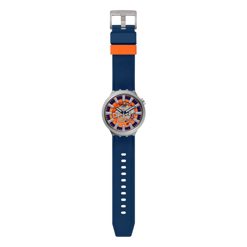 Swatch est une marque née dans les années 1980 qui met l'accent sur la durabilité en utilisant des matériaux recyclés dans la fabrication de certains de ces garde-temps. Swatch est bien plus qu'une simple marque de montres, c'est un symbole de créativité, d'innovation et d'accessibilité dans le milieu horloger. Dans la collection Essentials, se trouve cette magnifique montre Orange in the Works SB07S114. Elle est dotée d'un boîtier de couleur argentée confectionné en acier inoxydable satiné. De forme ronde, il mesure 47 mm de diamètre, 44,80 mm de longueur et 13,30 mm d'épaisseur. Ces dimensions conviendront à la fois aux poignets féminins que masculins. Afin de vous permettre d'admirer la beauté du cadran, un verre bombé prend place à sa surface. Vous pourrez régler les heures et les minutes au moyen du bouton remontoir placé à 3 heures. Enfin, le fond de boîte de ce garde-temps assure une étanchéité de 3 ATM.