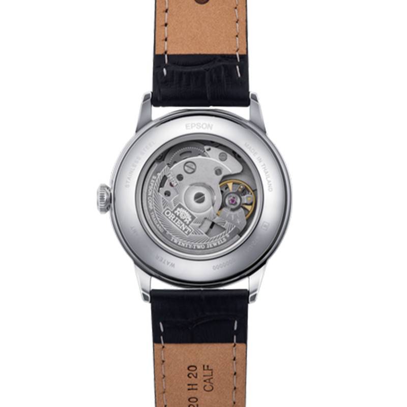 En s'inspirant de modèles élégants et distingués, la maison Orient a décidé de développer sa collection Classic proposant de nombreux garde-temps. Pour séduire tous les amateurs d'horlogerie de qualité, la maison japonaise a fait le choix de créer un modèle qui reprend les principes ancestraux de la conception du temps: la montre Orient Classic RA-AC0M02B. Celle-ci possède un boîtier en acier inoxydable qui se révèlera très résistant. De plus, cette création horlogère est équipée d'un verre minéral bombé et d'un bouton remontoir sur son flanc droit. Concernant ses dimensions, vous noterez un diamètre de 38,4 millimètres. Par ailleurs, le fond de boîte transparent de ce modèle est de toute beauté. Il permet de captiver votre regard sur le mécanisme. Pour finir, vous devez savoir que cette montre est étanche jusqu'à 3 ATM.