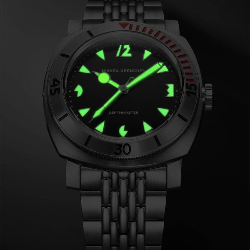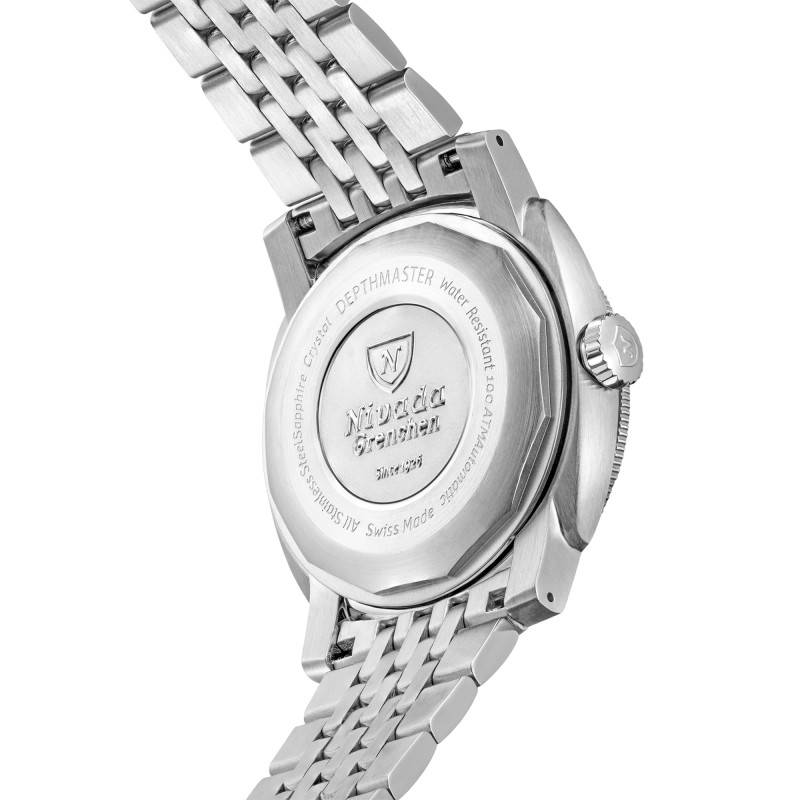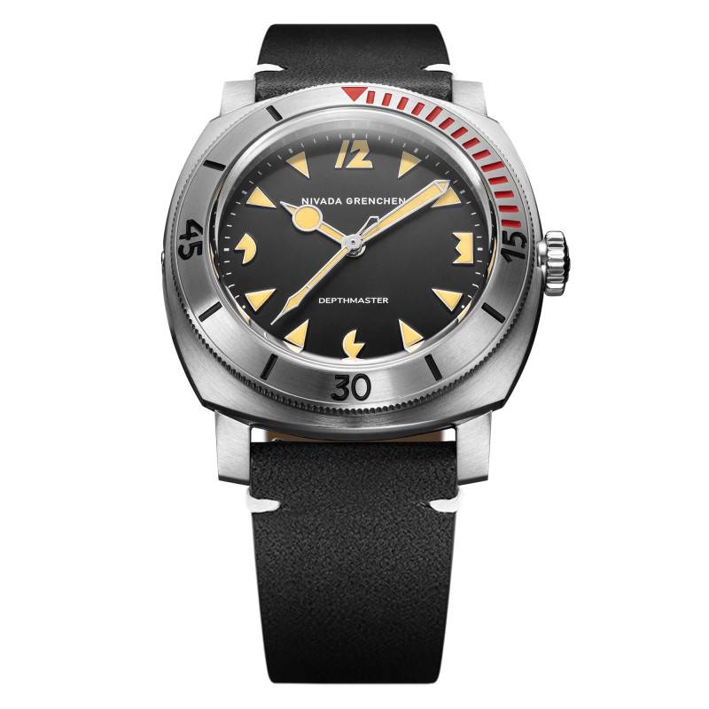 La montre Pacman Depthmaster se distingue par son allure robuste et élégante. Fabriqué en Suisse, son boîtier en acier inoxydable 316L offre une résistance et une durabilité reconnues mondialement. La forme coussin de ce boîtier ajoute une touche vintage tout en assurant confort et présence remarquable au poignet. Ce choix de design est rehaussé par une finition mate (brossée/satinée), créant un look raffiné qui n'oublie pas d'être fonctionnel. La lunette est unidirectionnelle, idéale pour la plongée, et son verre plat en saphir assure une clarté irréprochable tout en protégeant la montre des éraflures et des chocs.