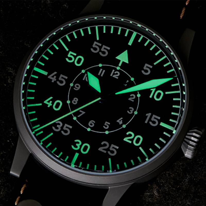 Au même moment où l'approvisionnement d'avions devenait nécessaire en Allemagne, le Ministère de l'aviation était également responsable de trouver des montres pour les pilotes de ses bombardiers. Laco est alors devenu l'un des équipementiers des pilotes de la German Air Force. Cette Paderborn se dote ainsi d'un boîtier mesurant 42 millimètres de diamètre et d'une épaisseur de 13 millimètres. Incroyablement vintage ce modèle reste fidèle à celui des années 1940. La couronne en oignon se loge aux trois heures et réglera tous les marqueurs temporels du cadran. Un verre saphir protège ce cadran au look rétro. Il est traité de manière à parer les reflets du rayon du soleil et assure ainsi une lecture de l'heure agréable. Au dos de la montre le fond de boîte est emboîté et renferme le mouvement automatique qui anime les aiguilles de ce bijou aérien. La construction est allemande, le mouvement est suisse et la maison est historique. Optez pour cette Paderborn signée Laco, elle satisfera les passionné d'aviation, les historiens et tous les amateurs d'horlogerie.