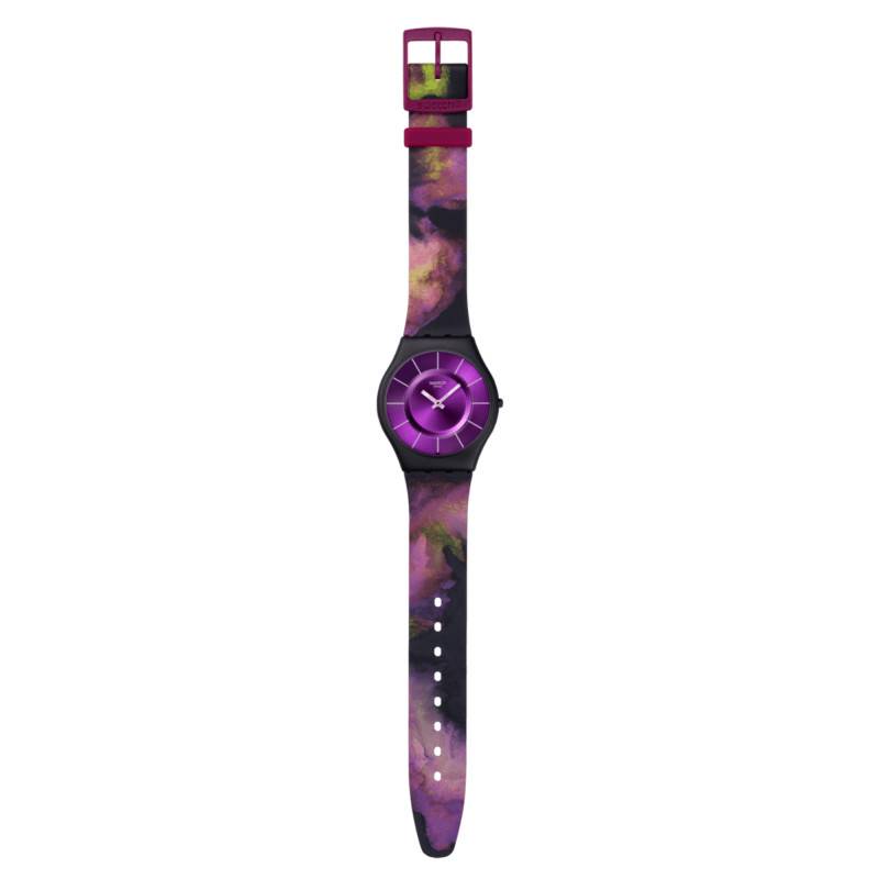 La montre Swatch Paradise Bloom est une création unique qui marie audace et élégance. Son boîtier de forme ronde en polymère biosourcé offre une durabilité exceptionnelle alliée à un design écoresponsable. Le diamètre de 34 mm en fait un modèle idéal pour une utilisation quotidienne, convenant tant aux hommes qu'aux femmes. D'une épaisseur de 4,30 mm, elle s'ajuste confortablement et discrètement sous une chemise ou un pull. Elle reflète un élan de modernité tout en incarnant la précision suisse caractéristique de la marque. Avec un verre protecteur résistant et un label de fabrication suisse authentifiant sa qualité, cette montre allie art et fonctionnalité.
