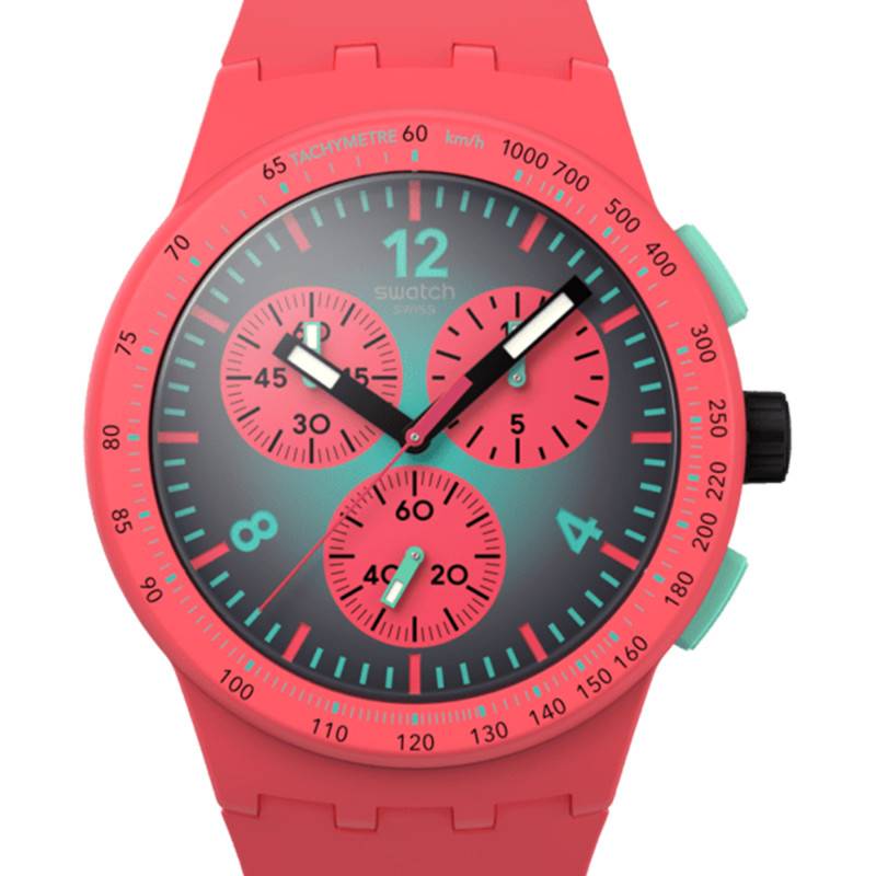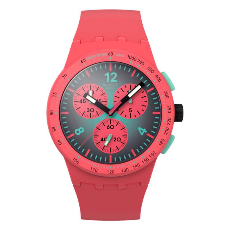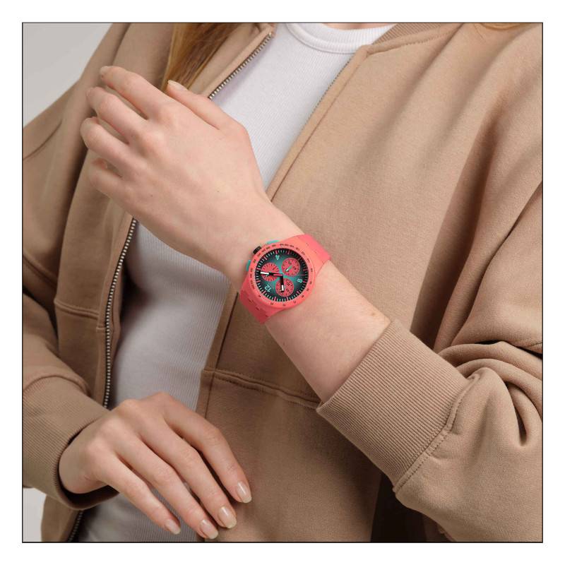 Le modèle Paradiso Kinetiko SUSP100 de Swatch représente la parfaite symbiose entre style et fonctionnalité avec un design audacieux et moderne destiné à une clientèle mixte. Cette montre suisse met en avant un choix de couleurs vibrant avec des teintes de rose et vert Le boîtier en plastique est non seulement léger, mais offre aussi un excellent confort au poignet avec des dimensions bien pensées: un diamètre de 42,00 mm, une épaisseur de 14.03 mm, et une longueur de 50,10 mm. La forme ronde du boîtier épouse parfaitement le poignet, tout en rehaussant le caractère dynamique de la montre grâce à sa construction robuste et moderne. Swatch s'est assuré que ce modèle soit doté d'une garantie internationale de 2 ans, renforçant la confiance et la tranquillité d'esprit des utilisateurs lors de leur achat de ce chronomètre exceptionnel.