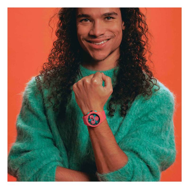 Complétant ce modèle Swatch unique et audacieux, le bracelet en silicone combine les couleurs bleue et rose, un choix de teintes qui ajoute une touche de fraicheur et de modernité à cet accessoire de style remarquable. Conçu pour être à la fois esthétique et fonctionnel, le silicone offre une résistance maximale aux divers environnements tout en assurant une souplesse et un confort qui rend cette montre parfaite pour un usage quotidien. Le fermoir, une boucle ardillon de couleur rose, assure un maintien sécurisé tout en participant au design coloré de l'ensemble. Que ce soit pour une journée détendue ou une rencontre plus formelle, le bracelet de cette montre offre une flexibilité de style qui s'accorde avec tous les codes vestimentaires.