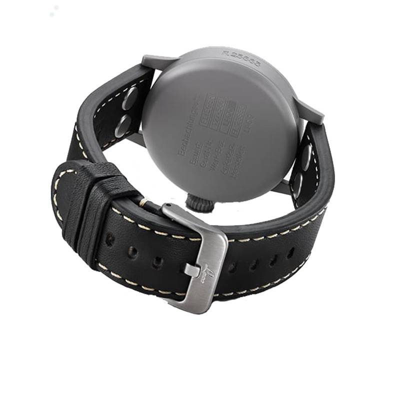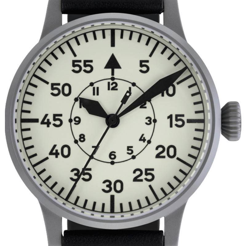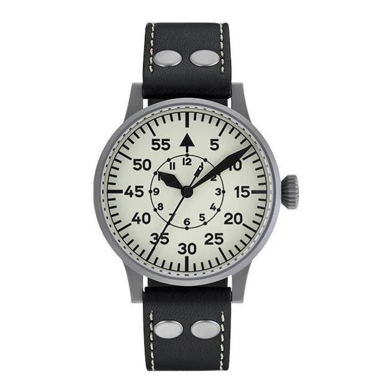 La marque allemande Laco, reconnue depuis de nombreuses années pour son savoir-faire et ses pièces inspirées de l'aviation, vous présente un nouveau modèle de la collection Pilot Original. Il arbore un boîtier en acier inoxydable gris anthracite de 42 millimètres de diamètre et 12.80 millimètres d'épaisseur. Ses dimensions sont résolument masculines. De plus, son cadran est surmonté par un résistant verre saphir. Doté d'un traitement anti-reflets, il le protégera au quotidien. Vous trouverez, à 3 heures, une couronne vissée qui vous permettra de contrôler le temps. Enfin, cette montre est étanche jusqu'à 5 atmosphères, grâce à son fond de boîte emboîté.