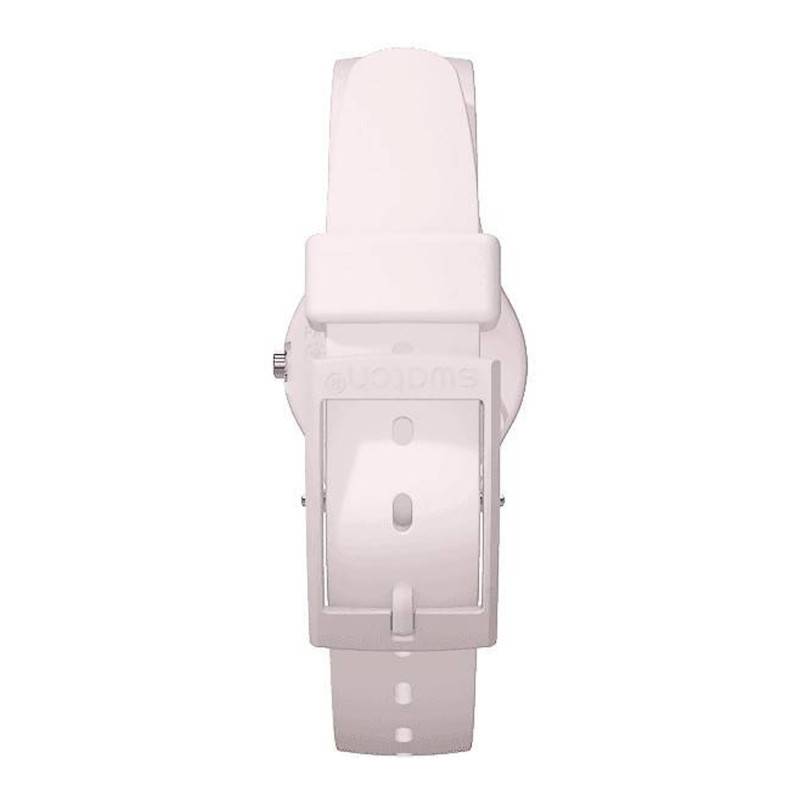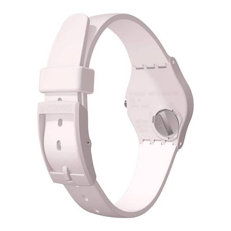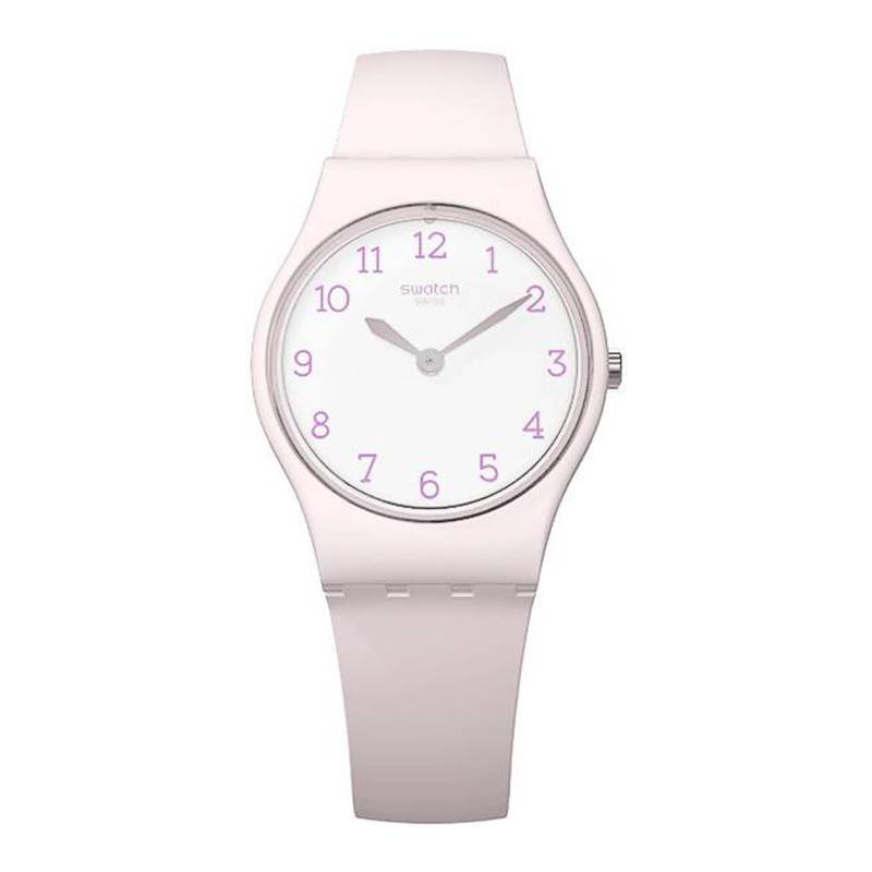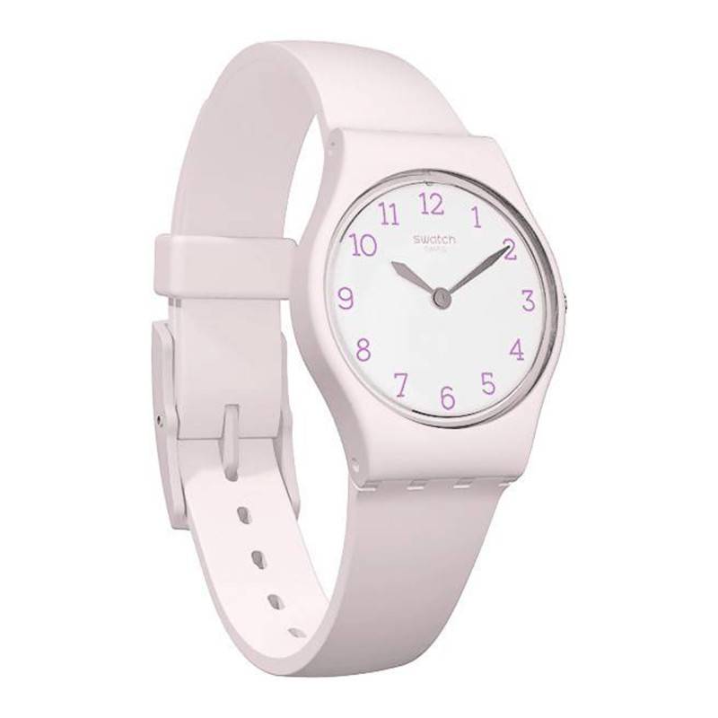 Créée en 19883, Swatch n'a cessé de se développer et fait aujourd'hui partie des marques iconiques de l'horlogerie suisse. Proposant des montres colorées et au design intemporel, il y en a pour tous les goûts ! Découvrez sans plus attendre la nouvelle montre de la marque suisse, la Pinkbelle LP150. Comme l'indique son nom, celle-ci se pare d'une robe rose et viendra à coup sûr habiller votre poignet féminin. Vous trouverez un boîtier rond mesurant 25 millimètres de diamètre pour 7 millimètres d'épaisseur sur lequel est disposée une couronne, à droite, qui vous offrira la possibilité de régler l'heure de votre montre si vous en avez le besoin. Au centre de celui-ci vous trouverez un cadran, également de forme ronde, et de couleur blanche. Au sein de ce même cadran sont placés divers éléments favorisant une lecture claire et efficace. Ainsi prennent place deux aiguilles glaives argentées qui viendront vous indiquer les heures ainsi que les minutes. Sur le pourtour du cadran se place un index en chiffres arabes de couleur violette. Faisant office de protection, un verre plexiglas surplombe le cadran. Pour finir, grâce à son boîtier monobloc, la Pinkbelle LP150 est dotée d'une étanchéité de 3 ATM, ce qui équivaut à 30 mètres.