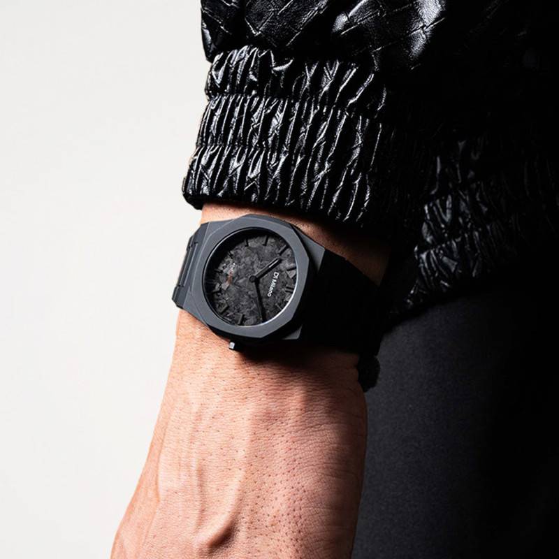 Le cadran de cette montre est une véritable pièce d'art moderne avec sa finition en fond carbone. La texture riche et complexe du carbone confère à ce cadran une dimension high-tech inédite, offrant un jeu de lumière fascinant. Les aiguilles luminescentes facilitent la lecture de l'heure, même dans les conditions de faible luminosité. Simple et minimaliste, il permet une lecture aisée des heures, minutes et secondes.