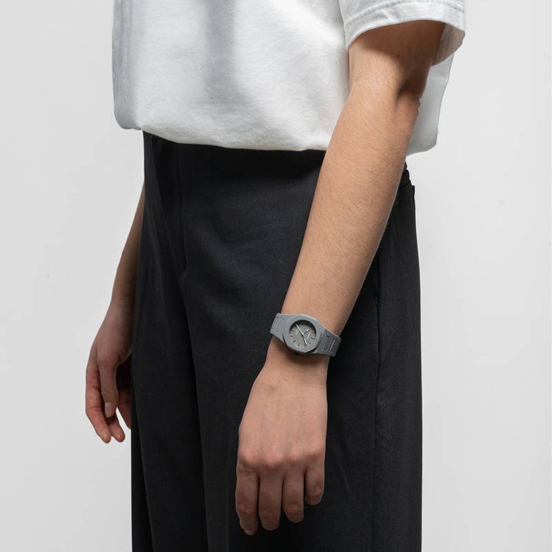Le bracelet en polycarbonate gris est doté d'une boucle déployante qui assure un port confortable et sécurisé. Mesurant 14 mm de largeur à l'entrecorne, il s'intègre parfaitement au design général de la montre, prolongeant l'esthétique contemporaine du boîtier. La matière synthétique confère légèreté et durabilité, un choix optimal pour une vie en mouvement.