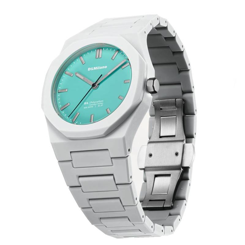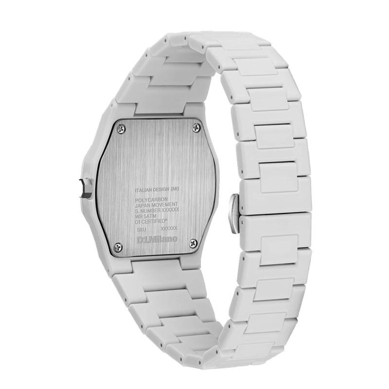 Dotée d’une étanchéité de 5 ATM, la D1 Milano Polycarbon Binary Pulse est conçue pour résister aux situations du quotidien telles que la pluie ou les éclaboussures accidentelles.