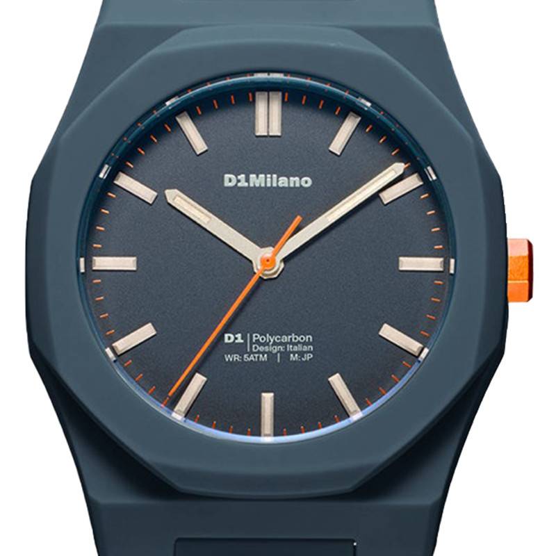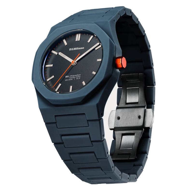 Avec une étanchéité de 5 ATM, la montre D1 Milano Polycarbon Blue Legacy promet une assurance contre les éclaboussures et une interaction modérée avec l’eau.