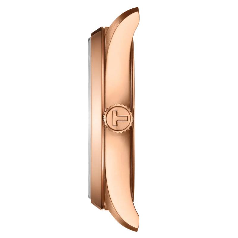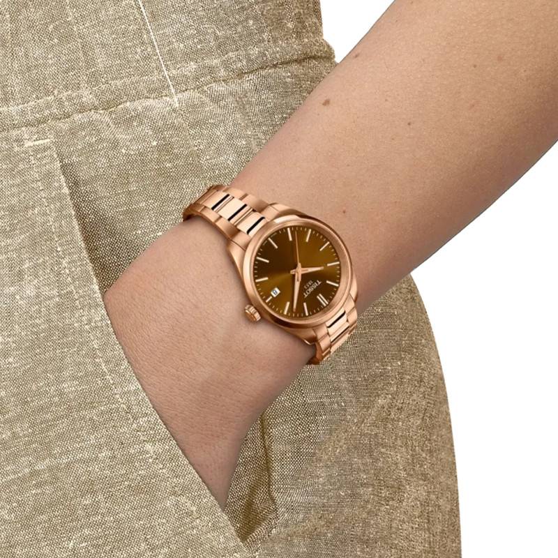 La montre Tissot PR 100 incarne l'élégance et la précision suisse à travers un design méticuleusement élaboré. Ce garde-temps séduit par son boîtier rond en acier inoxydable 316L, réputé pour sa robustesse et sa résistance aux conditions les plus exigeantes. Son diamètre de 34 mm et son épaisseur de 8,25 mm assurent une présence délicate au poignet, particulièrement adaptée à une allure féminine. Le boîtier bénéficie d'une finition en PVD rose qui enrichit l'ensemble d'une élégance contemporaine. La montre se distingue par son verre saphir plat, un matériau synthétique reconnu pour sa résistance exceptionnelle aux rayures.