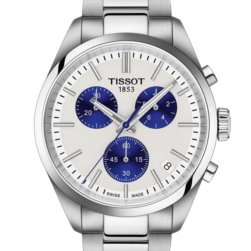 Le cadran de la montre PR 100 est un mélange frappant de blanc et de bleu, offrant une lisibilité parfaite grâce à sa finition mate et soleillée. Doté de trois sous-compteurs soigneusement agencés, le cadran présente un design harmonieux qui attire le regard et capte la lumière de manière éclatante. Les aiguilles et les index sont luminescents, permettant de lire l'heure même dans l'obscurité. Un guichet date est discrètement positionné pour un affichage clair et direct de l'information. Le chemin de fer des minutes ajoute une touche classique qui cadre parfaitement avec le reste du design.