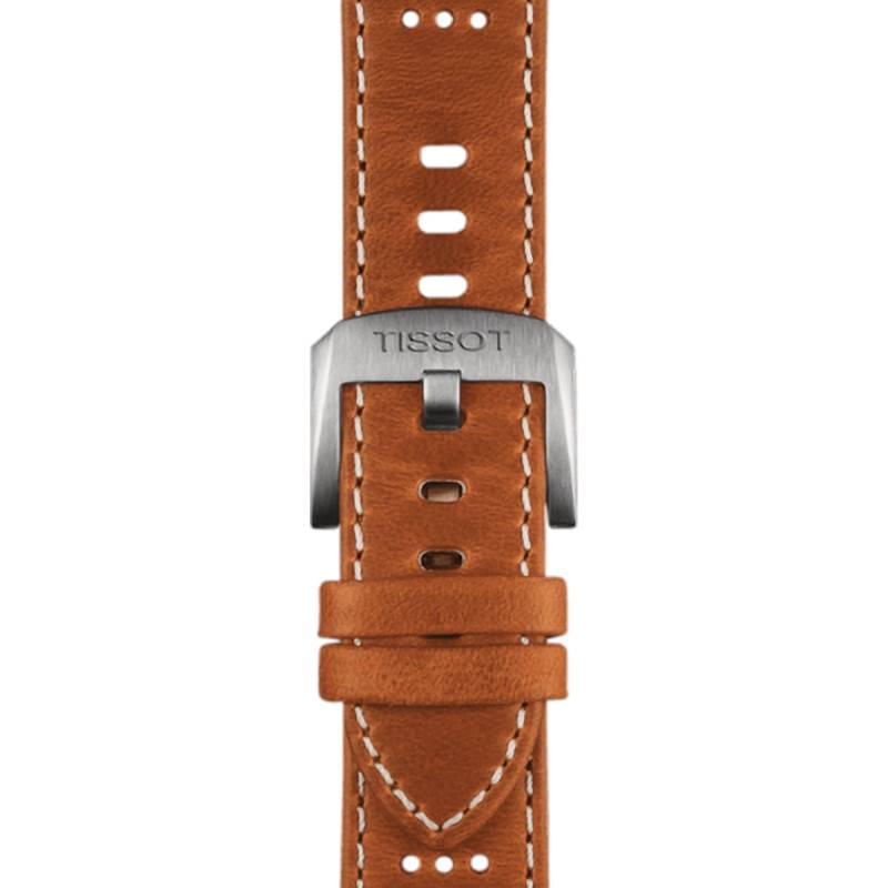 Ce modèle est complété par un bracelet en cuir de vachette qui viendra enjoliver votre allure de jour comme de nuit. Il est réputé et apprécié pour son caractère confortable. Arborant une belle teinte marron clair longé de surpiqûres blanches, il crée un bel effet contraste au poignet qui séduira sans aucun doute votre entourage. Interchangeable, il présente sur sa surface des perforations travaillées avec soin par des experts pour une note encore plus élégante. Disposant d'une largeur d'entre-corne de 20 mm, ce dernier se ferme au biais d'une boucle ardillon argentée.