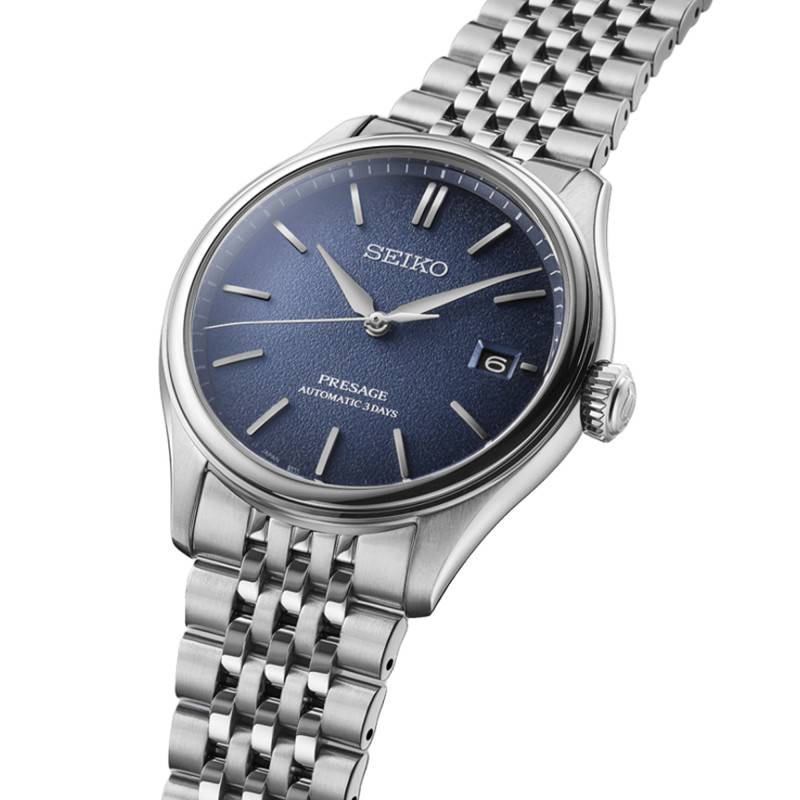 La montre Seiko Presage Automatique incarne l'essence de l'élégance horlogère avec son design méticuleusement conçu. Le boîtier, réalisé en acier inoxydable de haute qualité, présente une forme tonneau distinctive, offrant une allure à la fois moderne et classique. Avec un diamètre de 40,20 mm et une épaisseur de 12,95 mm, elle repose confortablement au poignet, combinant discrétion et présence. Le poids de ce boîtier, soit 139 g, confère à ce garde-temps une sensation équilibrée et réconfortante, rendant hommage à l'ingénierie japonaise de précision. Chaque détail est pensé pour combiner esthétisme et fonctionnalité, comme sa finition polie et satinée qui reflète superbement la lumière.