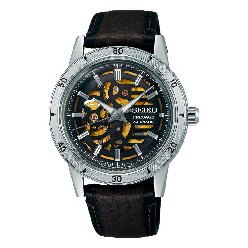 Seiko est une célèbre marque d'horlogerie, reconnue pour sa précision, son innovation et son engagement envers l'excellence. Fondée en 1881 par Kintaro Hattori, elle a rapidement marqué l'industrie horlogère grâce à ses garde-temps de haute qualité et à ses avancées technologiques révolutionnaires. Elle est synonyme de fiabilité, d'artisanat minutieux et de design élégant, proposant des modèles qui allient tradition et modernité. La marque japonaise s'est imposée sur le marché avec une large gamme de montres, allant des modèles sportifs et robustes aux créations plus raffinées et sophistiquées. Chaque garde-temps est un témoignage de son savoir-faire exceptionnel, combinant précision mécanique, esthétique soignée et une recherche constante de perfection. Aujourd'hui, la marque vous présente la montre Presage SSA461J1 qui est destinée à orner les poignets des hommes en toute condition. Elle révèle un boîtier rond de ton argenté qui est façonné en acier inoxydable poli, d'où cette allure brillante et une grande résistance dans le temps. Confortable à porter, celui-ci affiche 39,50 mm de diamètre avec 12 mm d'épaisseur. Il se pare d'une lunette grise avec des repères triangulaires et des chiffres arabes séparés 10 par 10. Cette dernière entoure un verre hardlex de type box shaped protégeant les aiguilles du cadran contre les chocs. Ces éléments sont manipulés par la couronne grise placée à 3 heures dont le rôle est d'assurer le réglage de l'heure. Avec son aspect cranté, elle favorise une bonne prise en main. Le tout est fermé par un fond de boîte vissé et gravé garantissant une étanchéité de 5 ATM. Grâce à son ouverture transparente, vous pourrez observer en détail les oscillations du mouvement.
