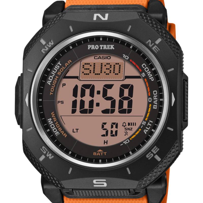 Le cadran de la PRG-69 Climber Line est un modèle de fonctionnalité. Offrant un affichage numérique clair et précis, il présente une excellente visibilité en toutes circonstances grâce à un écran Super Illuminator. Ce cadran multifonctionnel est capable d'afficher la date, le jour, le mois, les heures, les minutes, et les secondes. L'agencement des informations est pensé pour le confort de lecture rapide lors d'activités intenses, comme l'alpinisme ou le trekking.