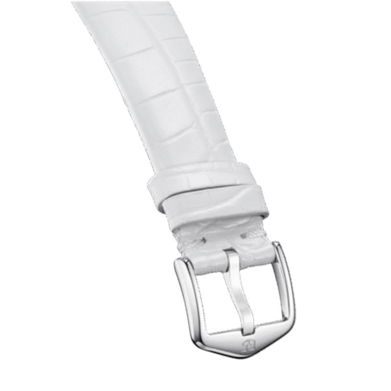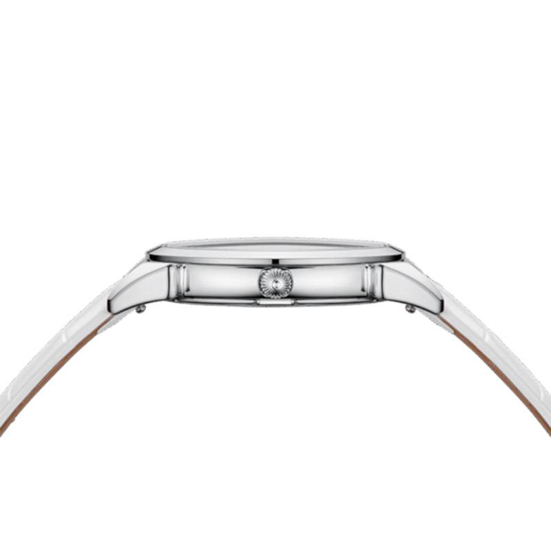 Le bracelet de cette montre est à la fois élégant et polyvalent, offrant deux options distinctes. Le bracelet principal en cuir d'alligator, avec sa teinte blanche élégante, confère une sensation de luxe et de raffinement. Son système de fermeture s'effectue avec une boucle ardillon. Par ailleurs, un second bracelet en acier inoxydable avec une finition polie vous est offert. Celui-ci apporte une touche plus contemporaine et urbaine, adaptée à toutes les occasions. Le système de fermeture par boucle ardillon assure une sécurité optimale tout en garantissant un ajustement parfait au poignet.