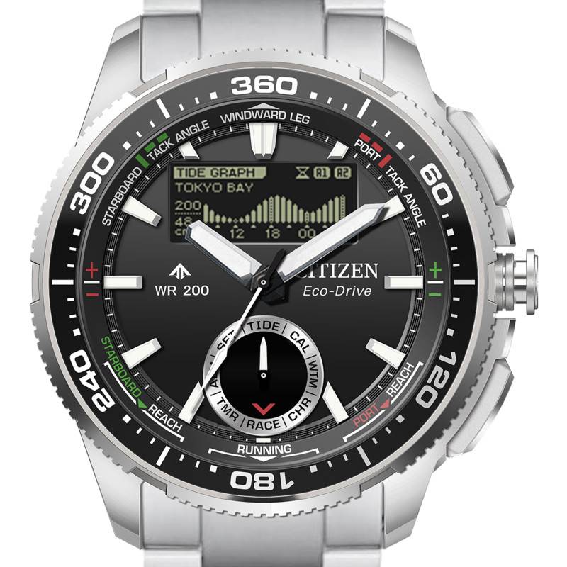 La Citizen Promaster Marine Wave Tracker est conçue pour les amateurs d'activités nautiques et propose un mariage parfait entre robustesse et style. Fabriquée en acier inoxydable, cette montre arbore un boîtier rond d'un diamètre de 42 mm, ce qui lui confère une présence assumée au poignet tout en conservant un certain confort. Les finitions alternent entre mates et polies, ce qui joue habilement avec la lumière et ajoute une profondeur visuelle attrayante. Son verre en saphir est traité pour être antireflet, offrant une clarté remarquable même en plein soleil.