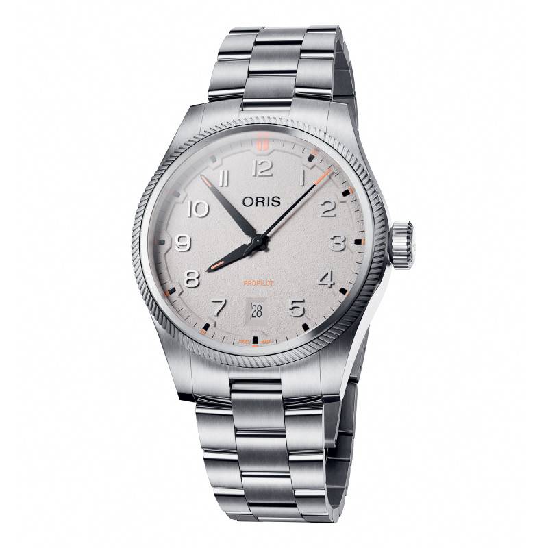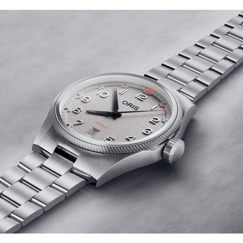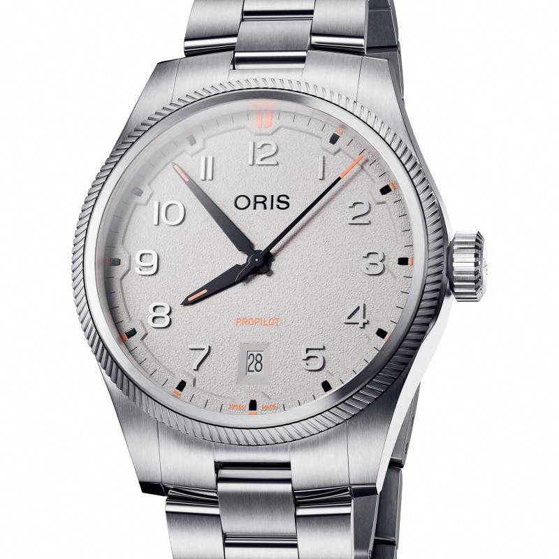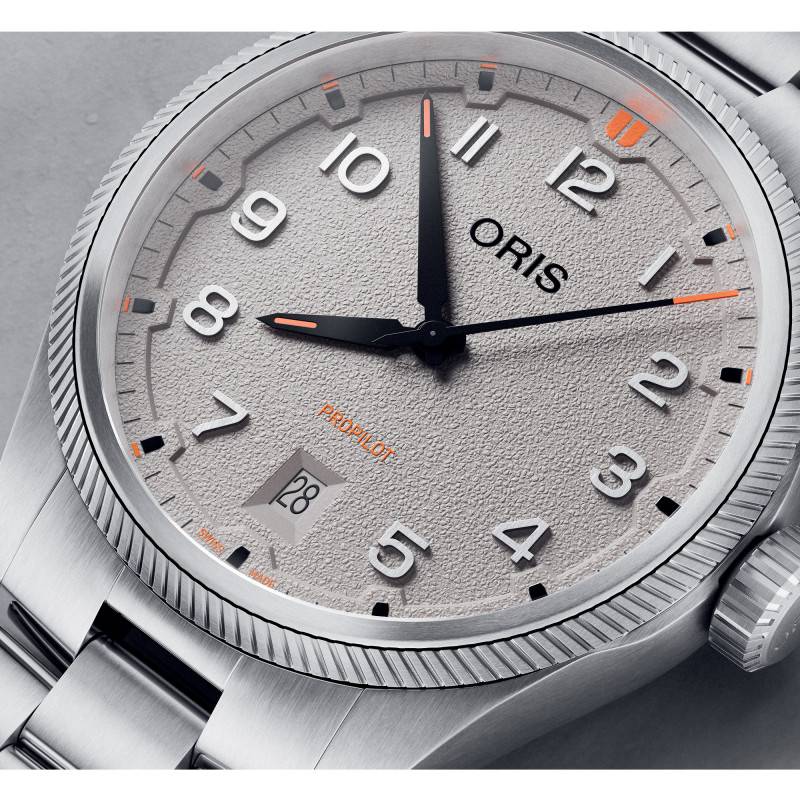 La montre ProPilot Craie d'Oris est une manifestation de l'élégance et de la performance suisse. Ce garde-temps exceptionnel arbore un boîtier rond de 41 mm en acier inoxydable, garantissant une robustesse et une résistance inégalées. La qualité du matériau est accentuée par une finition mate brossée et satinée. Un verre saphir bombé, traité antireflets, protège le cadran. Le fond de la montre est à la fois transparent et vissé, une caractéristique qui offre un aperçu fascinant du mouvement complexe à l'intérieur.