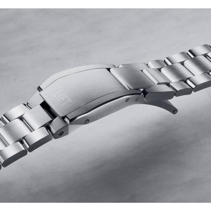 Le bracelet de la montre est aussi robuste qu'élégant, conçu en acier inoxydable avec une finition polie et brossée. D'une couleur grise, il complète magnifiquement le boîtier. Sa construction solide assure une résistance à l'usure quotidienne, tout en offrant un confort optimal grâce à sa boucle déployante. Sa largeur standard de 20 mm garantit une tenue sécurisée et ajustée au poignet.