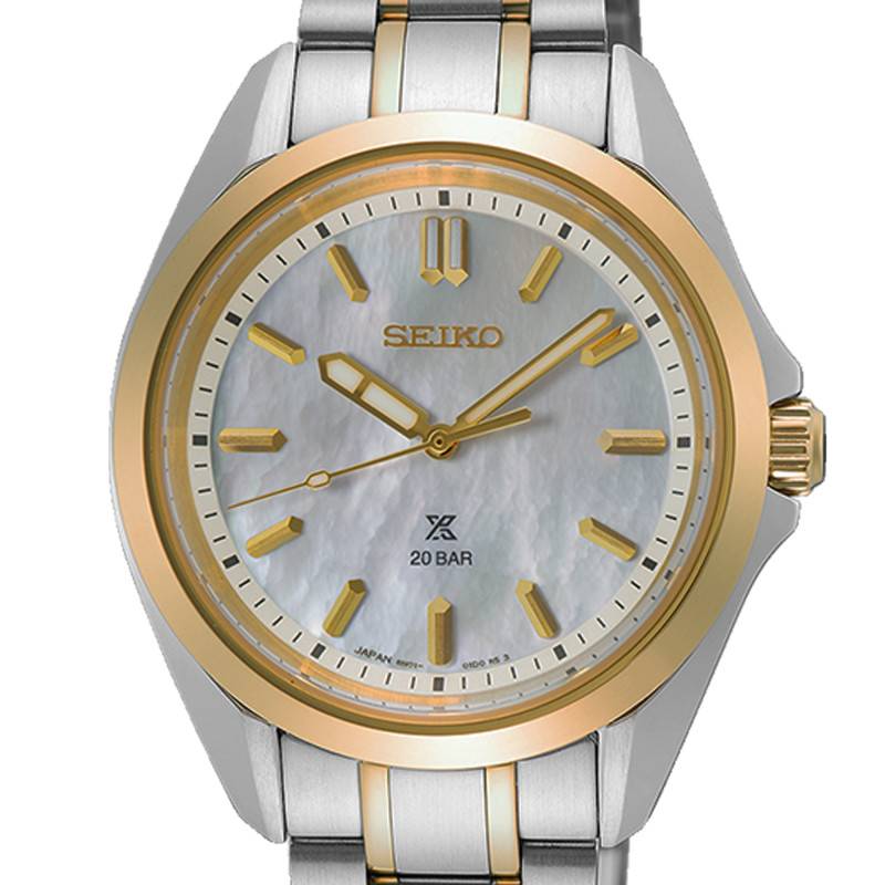 Cette montre Seiko Prospex Sea Lady, conçue pour celles qui apprécient l'alliance de l'élégance discrète et de la performance, est parfaite pour le style de vie actif et moderne. Le boîtier en forme de tonneau, fabriqué en acier inoxydable, offre une résistance et une durabilité exceptionnelle. Avec un diamètre de 34 mm, il épouse parfaitement le poignet de celle qui la porte, offrant confort et style. Son épaisseur de 8,90 mm et sa longueur de 40,80 mm la rendent discrète tout en étant présente. Le fini acier inoxydable se marie avec un verre saphir bombé, connu pour sa résistance exceptionnelle aux rayures, garantissant ainsi une longévité sans précédent. La couronne vissée et le fond de boite vissé augmentent encore sa robustesse et son étanchéité, en la rendant idéale pour des environnements aquatiques exigeants.