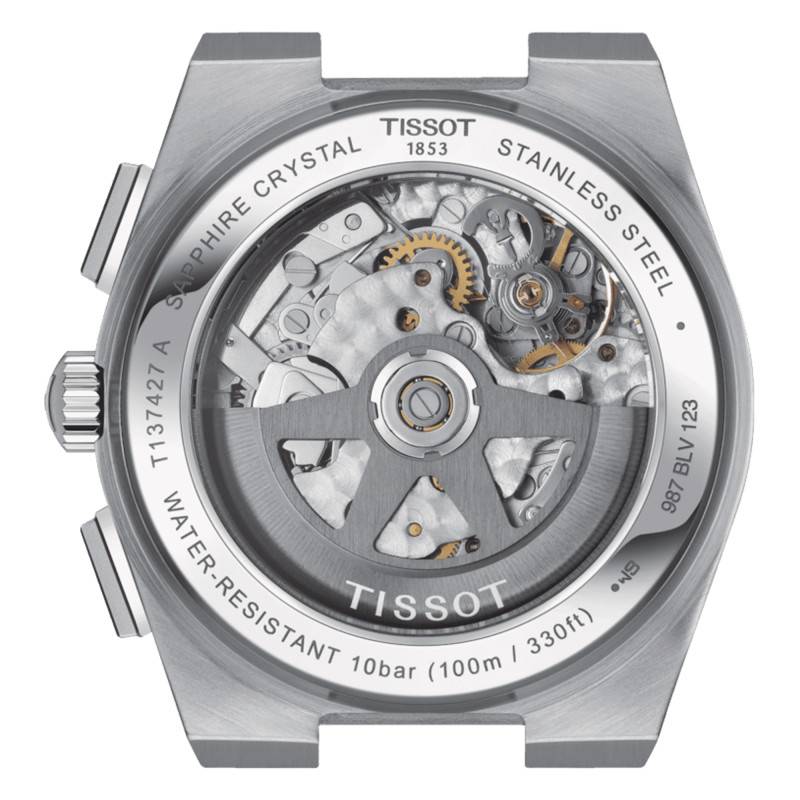 C'est en 1853 que Charles Félicien Tissot et Charles Émile Tissot fondent une petite entreprise basée au Locle, dans le Jura Suisse. Celle-ci va émerger au fil des années et se fera connaître sous le nom de Tissot. Son nom témoigne d'une expertise hors du commun qui relève quotidiennement le savoir-faire horloger suisse. Étant un acteur majeur de la tendance horlogère moderne, elle fabrique avec brio des garde-temps sophistiqués dont la robustesse est saluée par les clients les plus exigeants. Les matières que la marque utilise ont toujours été de première qualité, donnant vie à des créations uniques et stylées. Les hommes et les femmes à la recherche de la fusion parfaite entre l'élégance et la praticité se retrouvent parfaitement dans les créations proposées par Tissot. Faisant preuve d'un héritage de plus d'un siècle, elle propose aux hommes cette belle montre T1374271109100 issue de la prestigieuse collection PRX Automatic Chronograph. Son boîtier est conçu en acier inoxydable 316L afin de lui octroyer une résistance hors du commun et une pérennité fiable au fil des années. Il affiche notamment une sublime couleur grise qui est mise en avant par une finition minutieusement brossée. Ayant une forme tonneau pour une allure plus remarquable, il présente une longueur de 41,50 mm, un diamètre de 42 mm, une épaisseur e 14,50 mm et dispose d'un poids de 184 gr. La lunette étant polie pour un attrait plus harmonieux avec l'ensemble, entoure un verre saphir inrayable qui protège durablement le cadran contre les chocs et les rayures. Grâce à son traitement antireflet, il devient plus facile de bénéficier de l'heure même dans les recoins exposés aux fortes lumières. De plus, la couronne cannelée à 3 heures procure une manipulation aisée des éléments centraux. Elle est aidée par les deux boutons-poussoir qui sont chargés d'actionner la fonction chronographe. Faite pour défier les aléas de la nature, cette ravissante montre dispose d'un fond emboîté et transparent qui vous laisse admirer le mouvement complexe de son calibre. Il garantit spécifiquement une étanchéité de 10 ATM qui fait de ce modèle l'accessoire idéal qui vous accompagnera au quotidien dans vos plus grandes aventures.