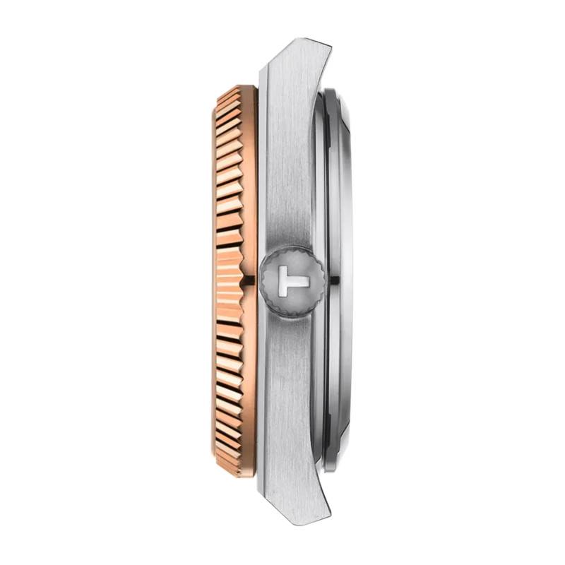 Cette montre élégante de Tissot est un exemple remarquable de l'art de l'horlogerie suisse. Elle marie harmonieusement acier inoxydable 316 L pour le boîtier et or rose 18 carats pour la lunette afin de créer une pièce à la fois moderne et raffinée. Le boîtier en tonneau de 35mm de diamètre est parfaitement proportionné, assurant un confort optimal pour les poignets de tailles diverses. Avec un poids de 98g, elle offre un équilibre parfait entre présence et confort. Le fond transparent vissé permet d'admirer le travail exceptionnel du mouvement, soulignant à la fois la robustesse et l'expertise technique qui caractérisent cette montre. Grâce à son verre saphir bombé traité antireflets, elle assure une visibilité optimale du cadran en toutes circonstances.