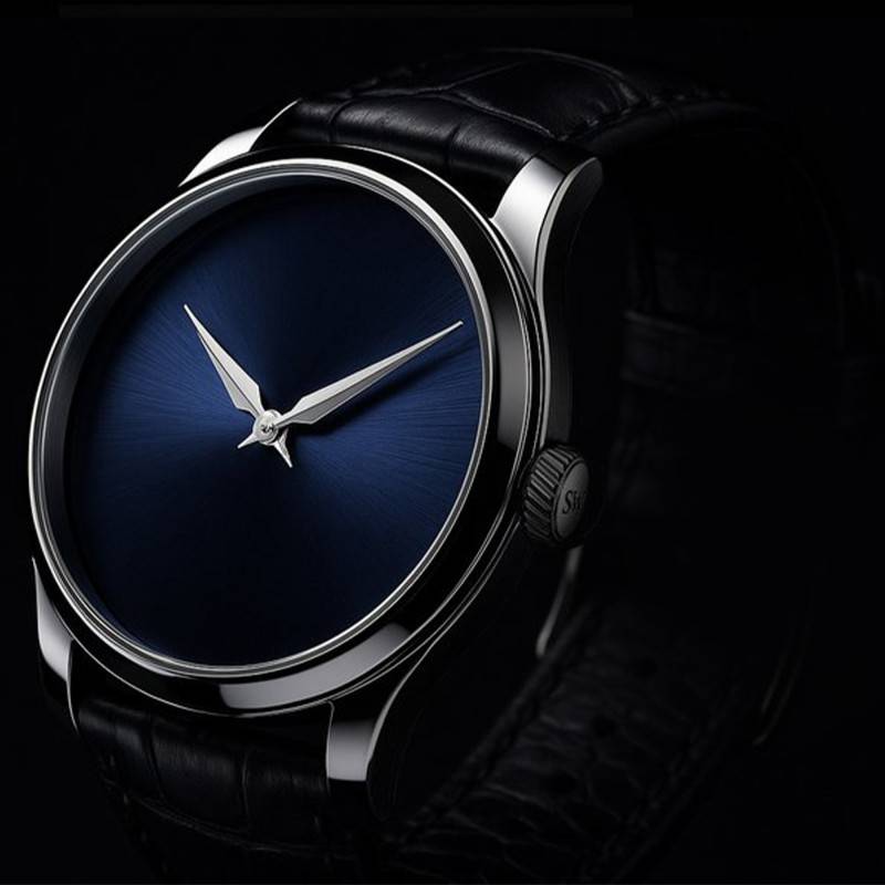 Le cadran de la Purista Blao arbore une sublime teinte bleue vibrante qui capte l'attention par sa finition brossée et soleillée. Les aiguilles dauphine, épurées mais élégantes, parcourent la surface lisse du cadran avec une fluidité remarquable, garantissant une lecture immédiate des heures et des minutes. La sobriété de ce cadran sans indices ni chiffres exprime une approche minimaliste, préférant la pureté des lignes à la surcharge visuelle, et offre ainsi une allure intemporelle et universelle.