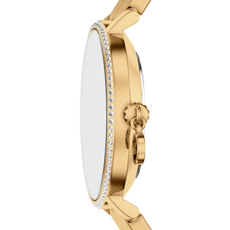 La montre Michael Kors Pyper se distingue par son allure luxueuse et féminine. Conçue principalement pour un public féminin, ce garde-temps éblouissant attire par son design soigneusement élaboré. Le boîtier est de forme ronde, réalisé intégralement en acier inoxydable de haute qualité. Ce matériau assure non seulement la durabilité mais aussi une finition élégante grâce à son application de PVD rose. Mesurant 38 mm de diamètre, elle s'adapte confortablement à la plupart des poignets tout en offrant une présence notoire sans être trop imposante.